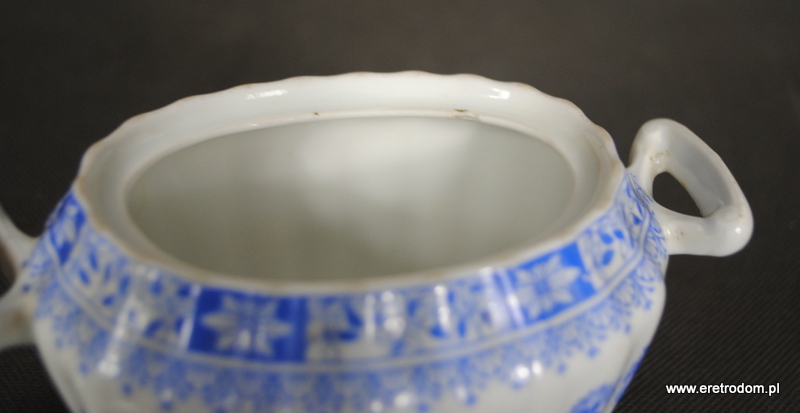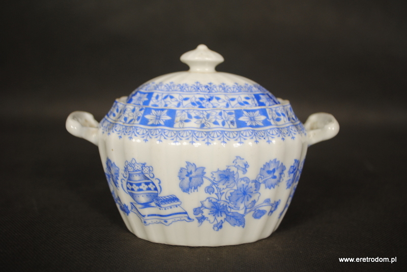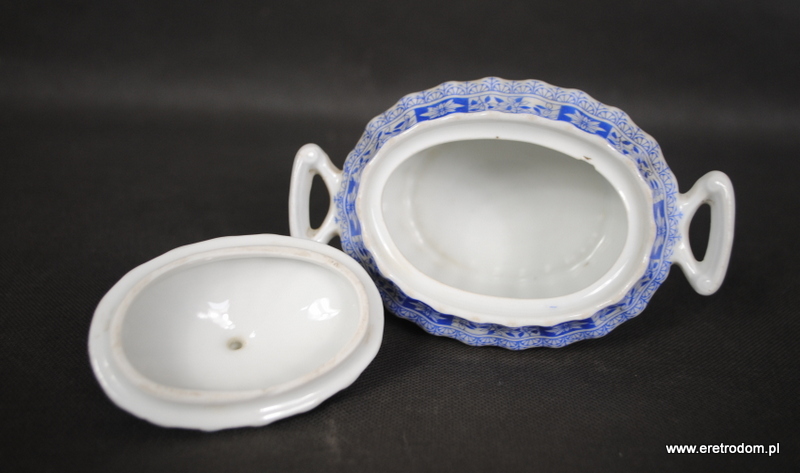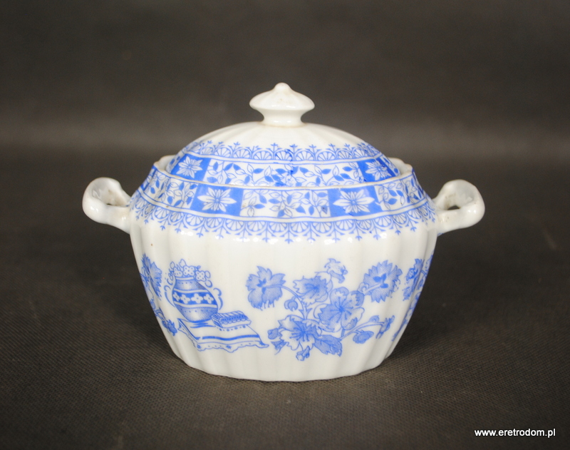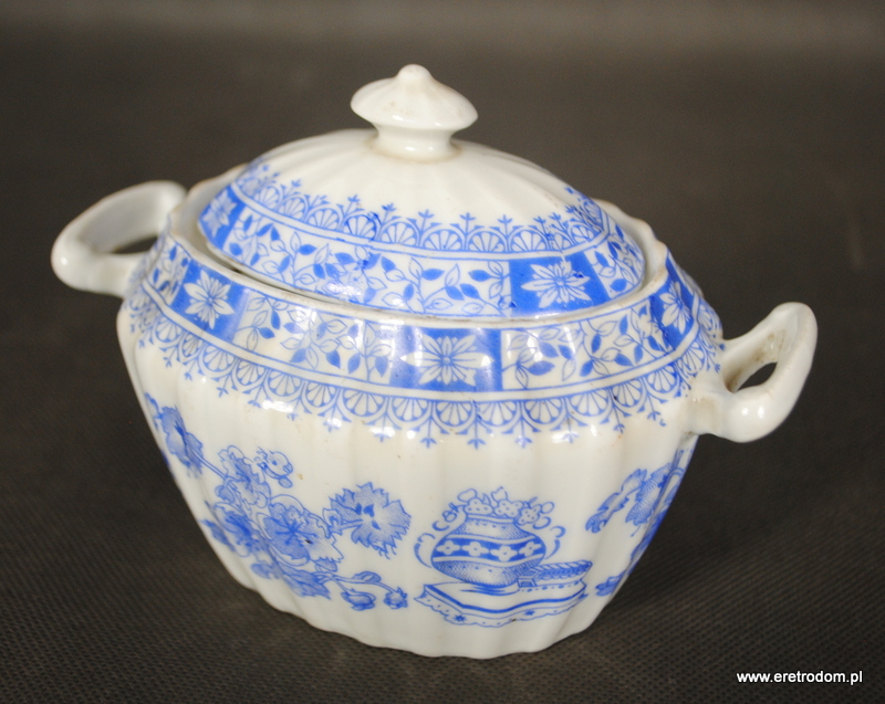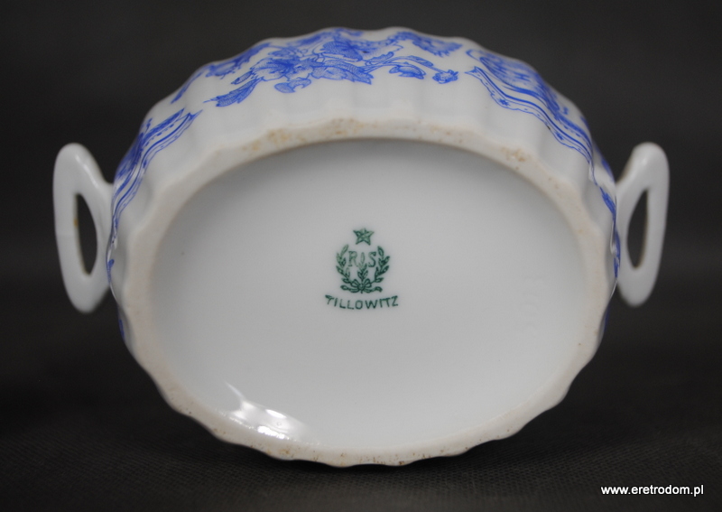 Cukiernica sygnowana Tillowitz (sygnatura z lat 1910-1945r.). Biała delikatna porcelana ozdobiona motywem china blue. Od spodu sygnatura producenta.