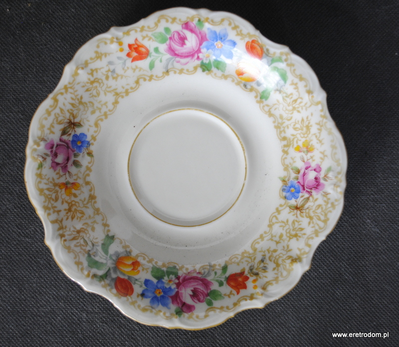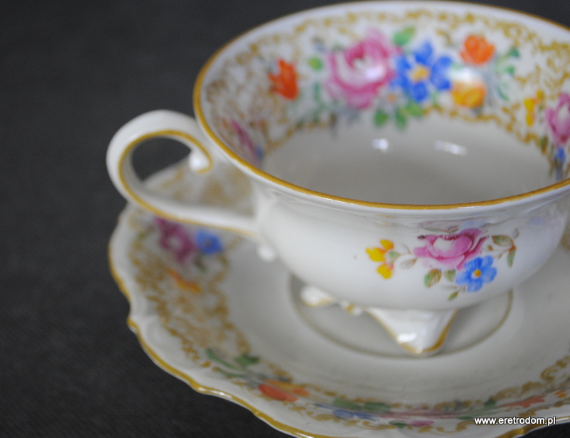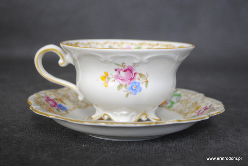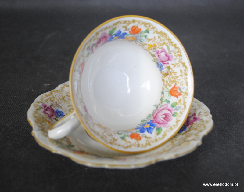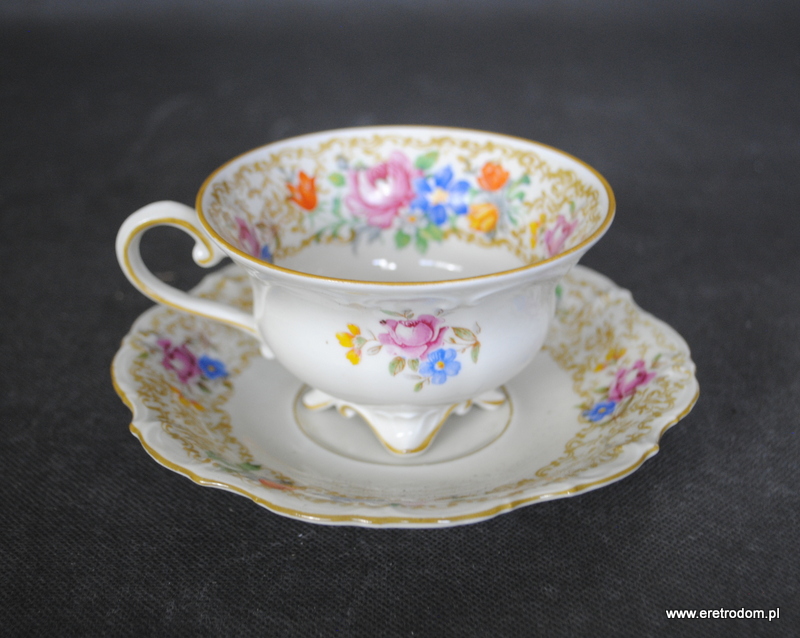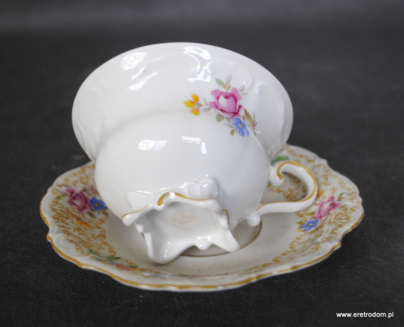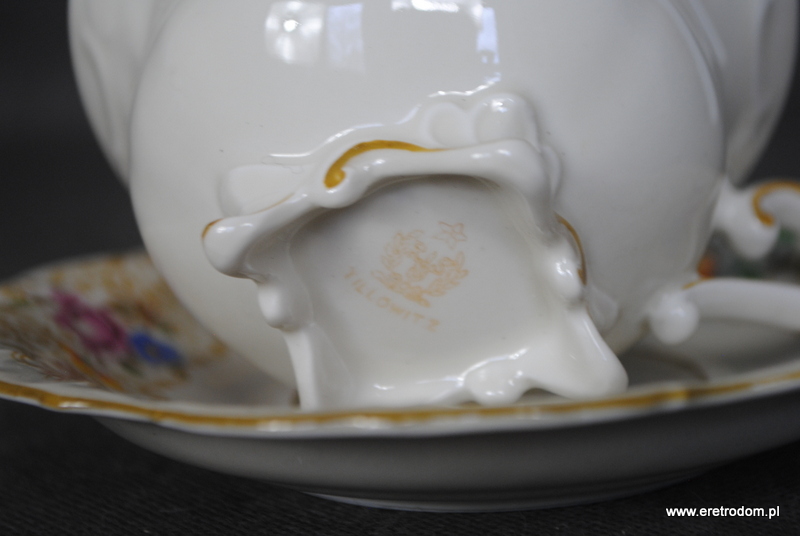 Filiżanka ze spodkiem, Tillowitz. I poł. XXw. Porcelana w kolorze ecru, kalka kwiatowa.