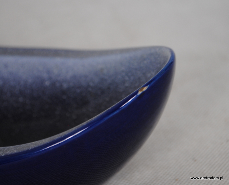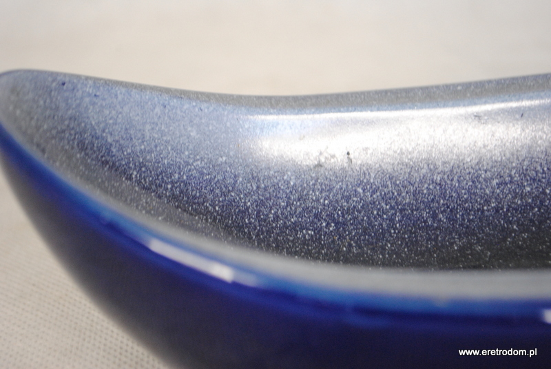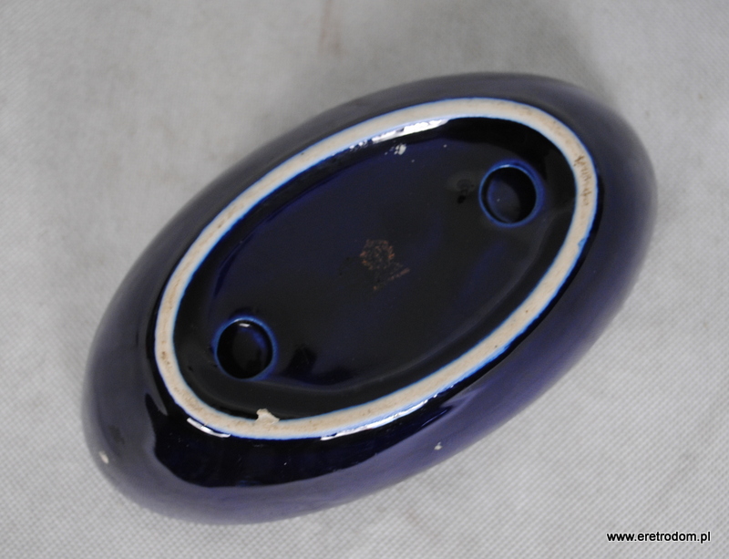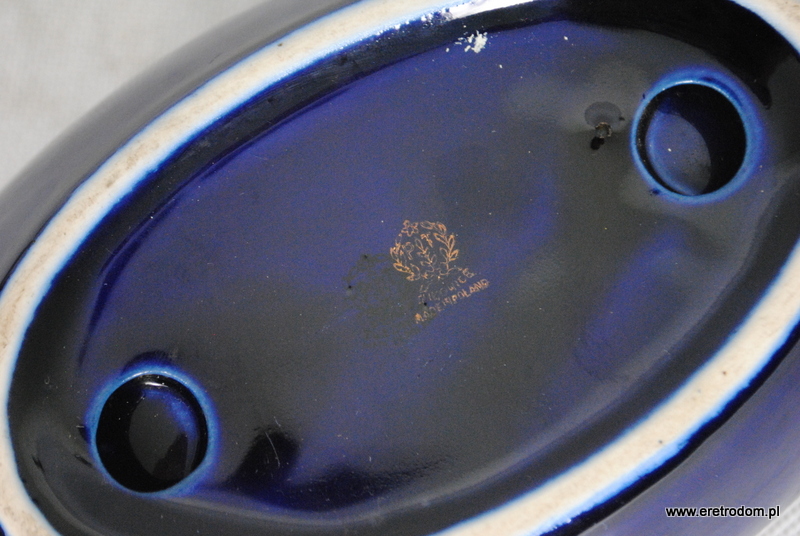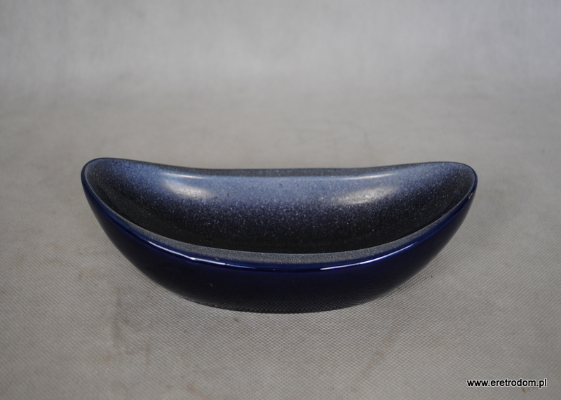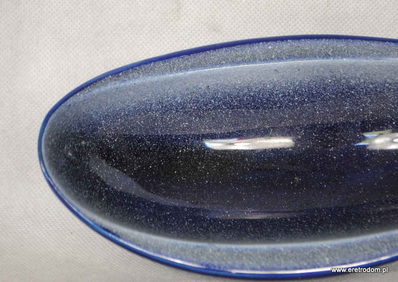 Gondola czy też paterka sygnowana Tułowice. Porcelit malowany na kobaltowy kolor. Ozdobiony natryskowo.