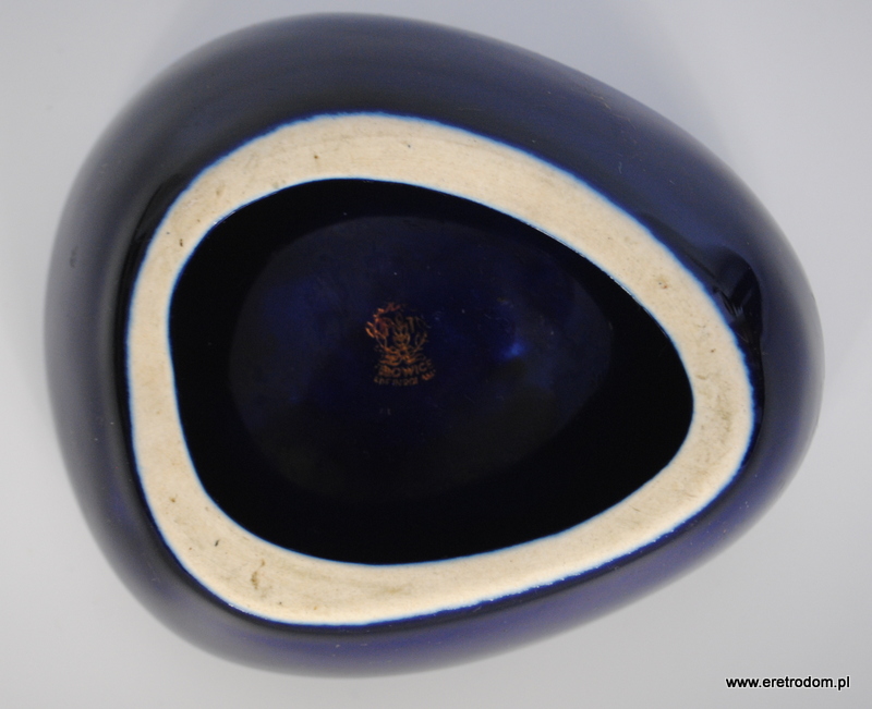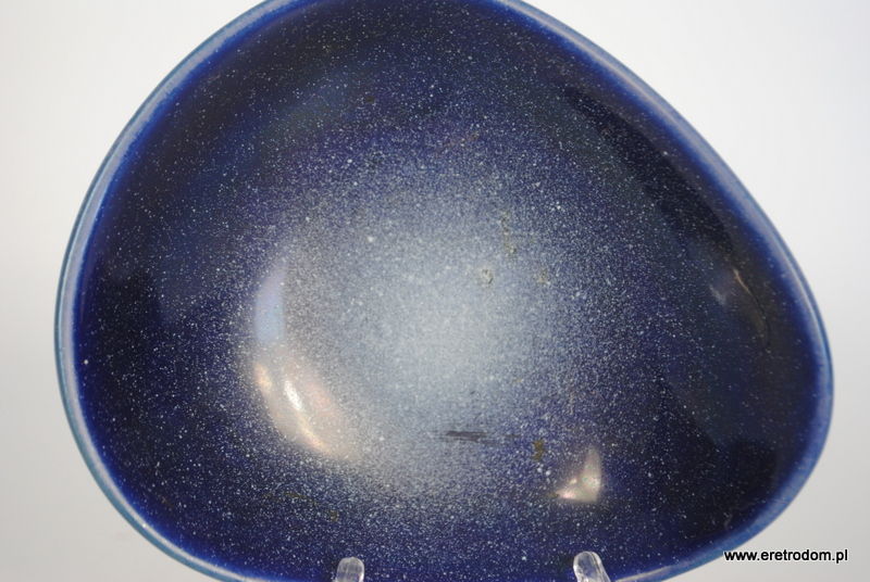 Popielniczka sygnowana Tułowice. Ceramika szkliwiona na ładny kobaltowy kolor w centralnej części jaśniejsza.