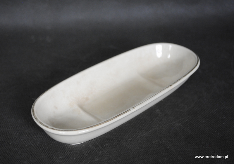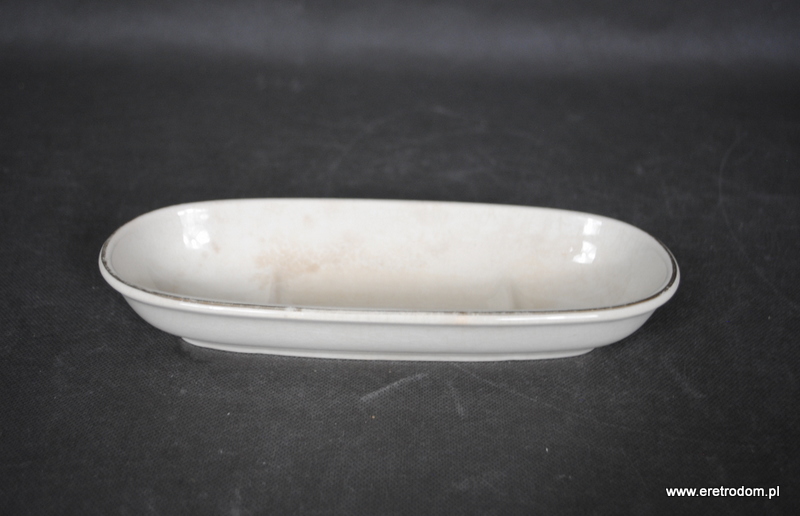 Podstawka na grzebienie czy pędzle sygnowana Villeroy & Boch ( przełom XIX i XXw.). Porcelana w kolorze śmietanki, rant ozdobiony złotym paskiem.
