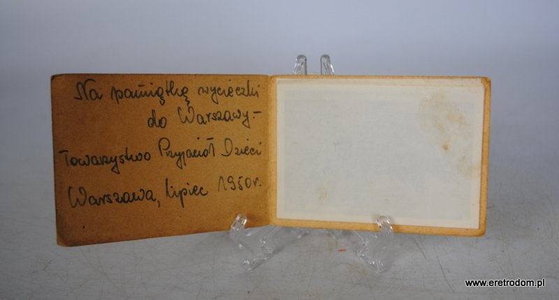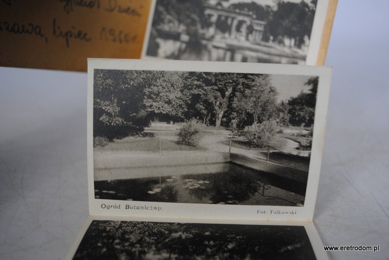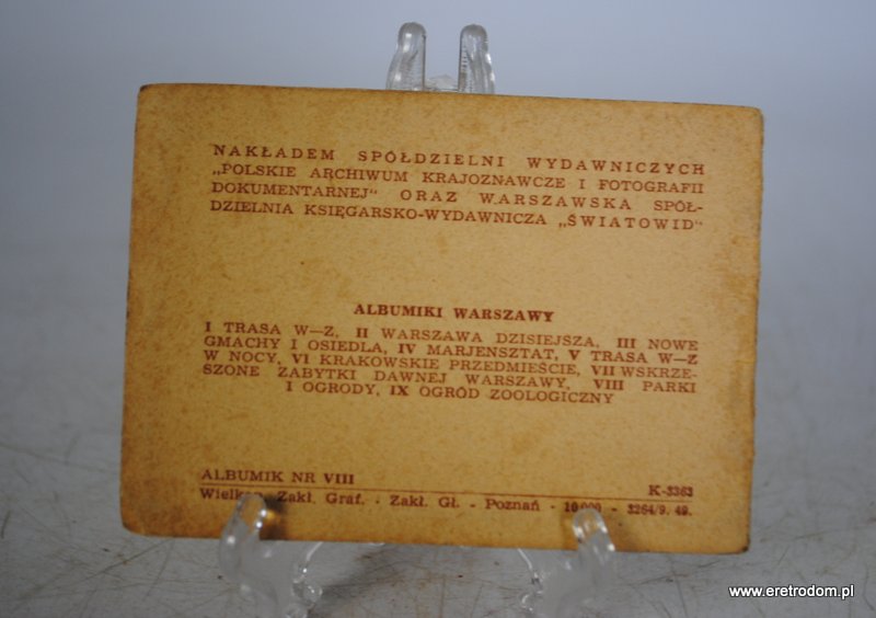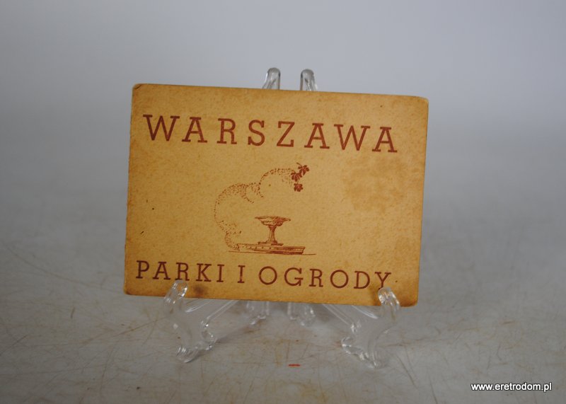 Broszura ze zdjęciami, pamiątka z Warszawy przedstawiająca jej parki i ogrody. Nakładem Spółdzielni Wydawniczych „Polskie Archiwum Krajoznawcze i Fotografii Dokumentalnej” oraz Warszawska Spółdzielnia Księgarsko-Wydawnicza „Światowid”. W środku dedykacja z 1950 roku.