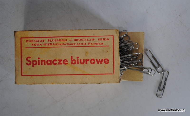 Warsztat Ślusarski Bronisław Sojda spinacze biurowe. Całość w tekturowym opakowaniu.
