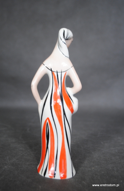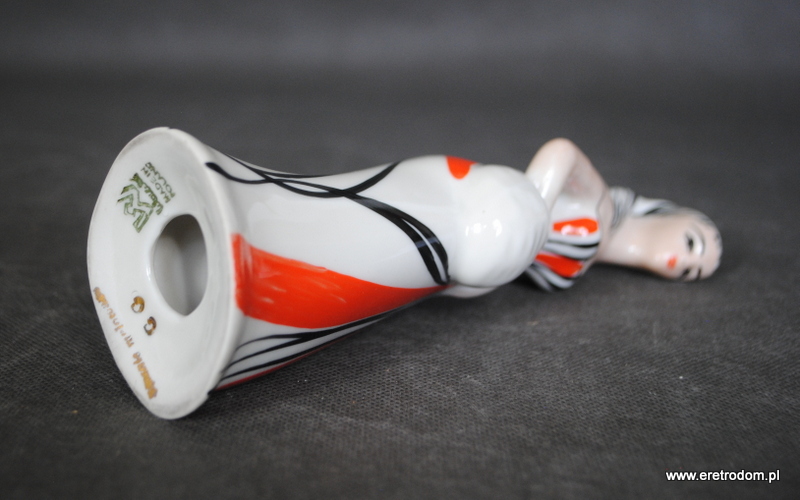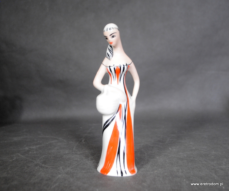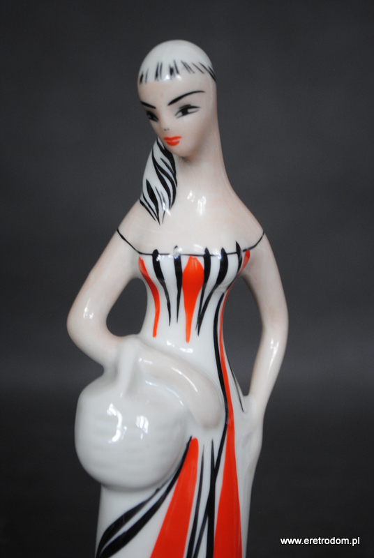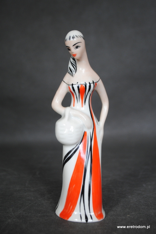 Figurka Grzybiarka sygnowana Wawel. II poł. XXw. Biała porcelana utrzymana w stylistyce New Look.
