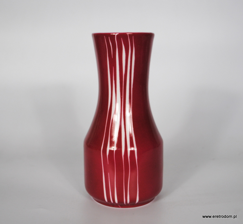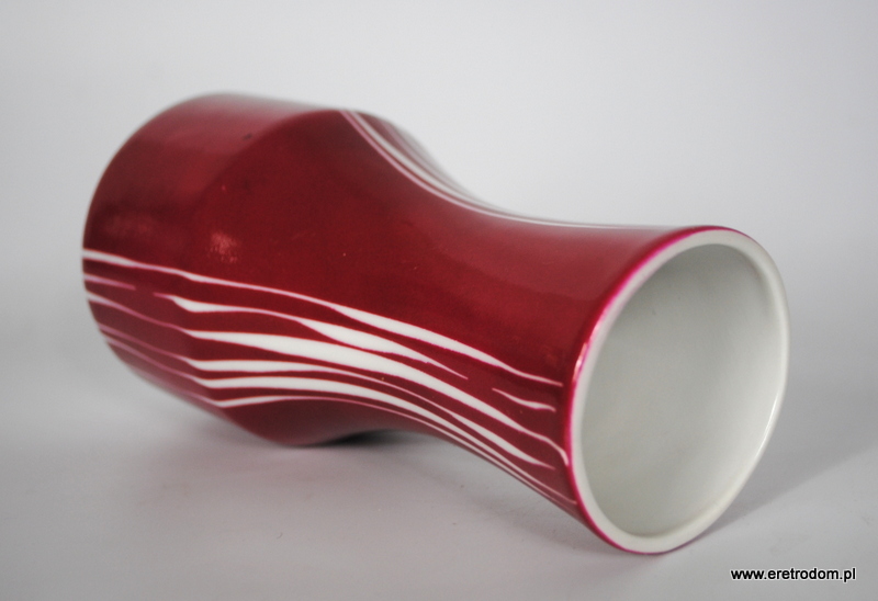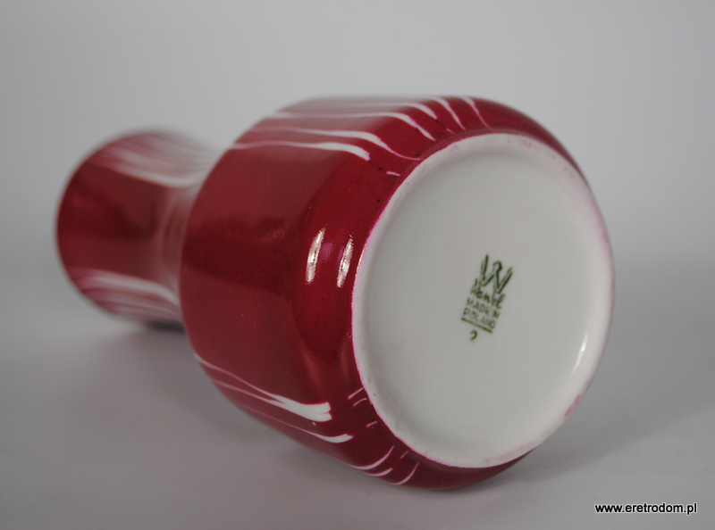 Wazon sygnowany Wawel. Utrzymany w stylistyce new look. Malowany na kolor magenta- ciemny róż. Zdobienia uzyskane techniką drapaną.