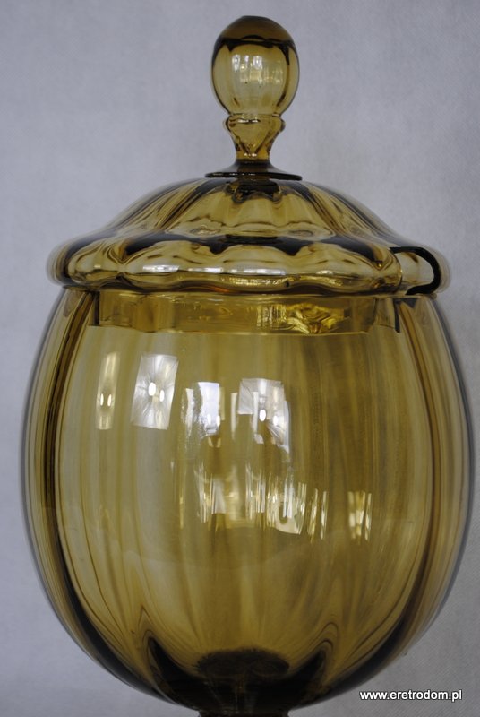 Stareńka, okazała waza na poncz. Piękne szkło barwione w masie. Posiada otwór na łyżkę/chochlę. Brzusiec na zgrabnej stopie.