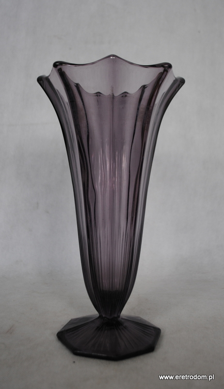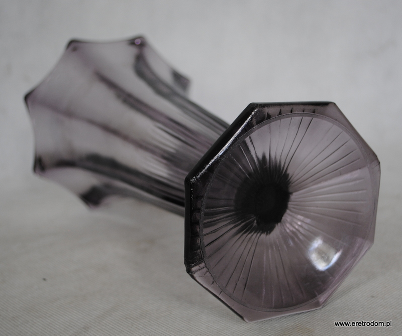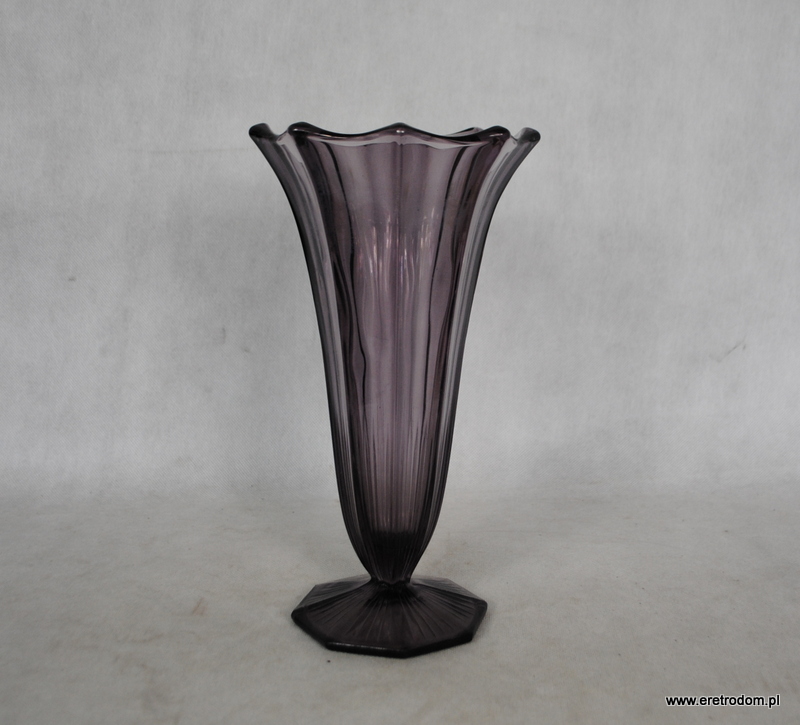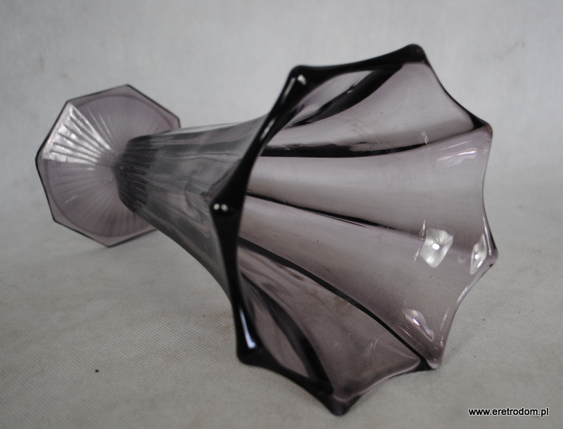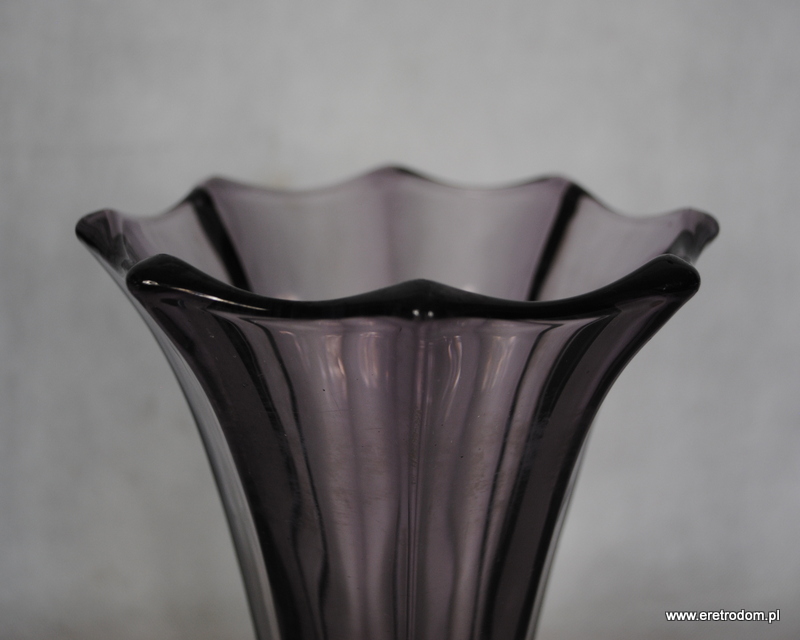 Wazon wykonany w I poł. Szkło barwione w masie na fioletowy kolor.