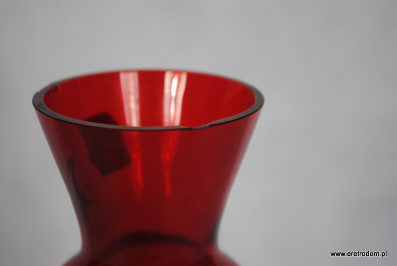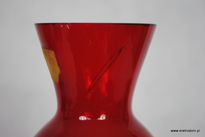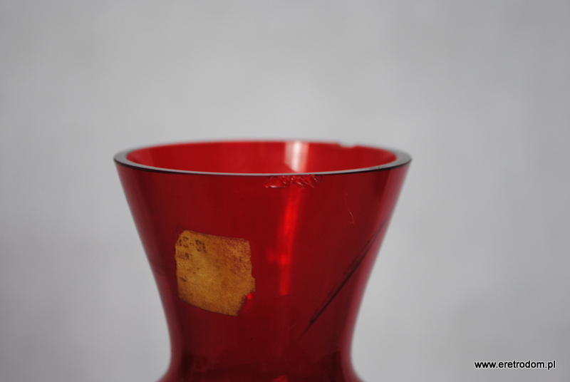 Wazon tzw. „bałwanek” Kazimierza Krawczyka wyprodukowany w Hucie Sudety w Szczytnej Śląskiej. Szkło sodowe barwione w masie na kolor czerwony. Posiada pozostałości naklejki producenta.