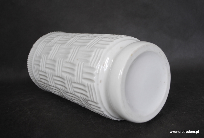 Wazon wykonany z porcelany, szkliwiony. Ciekawa faktura pasków które układają się w kratkę.