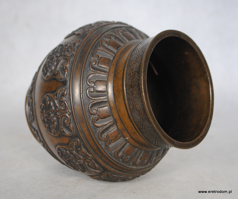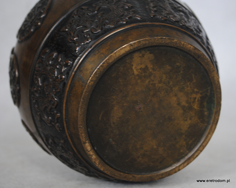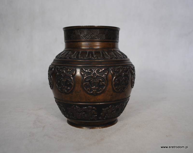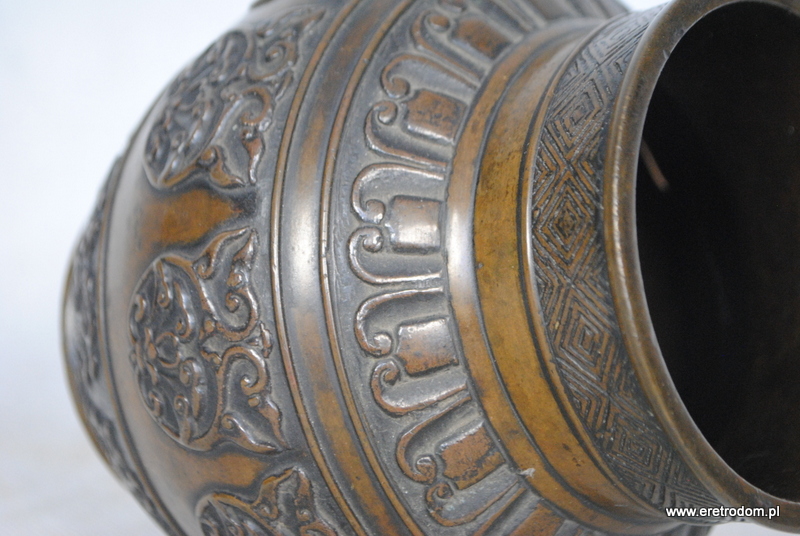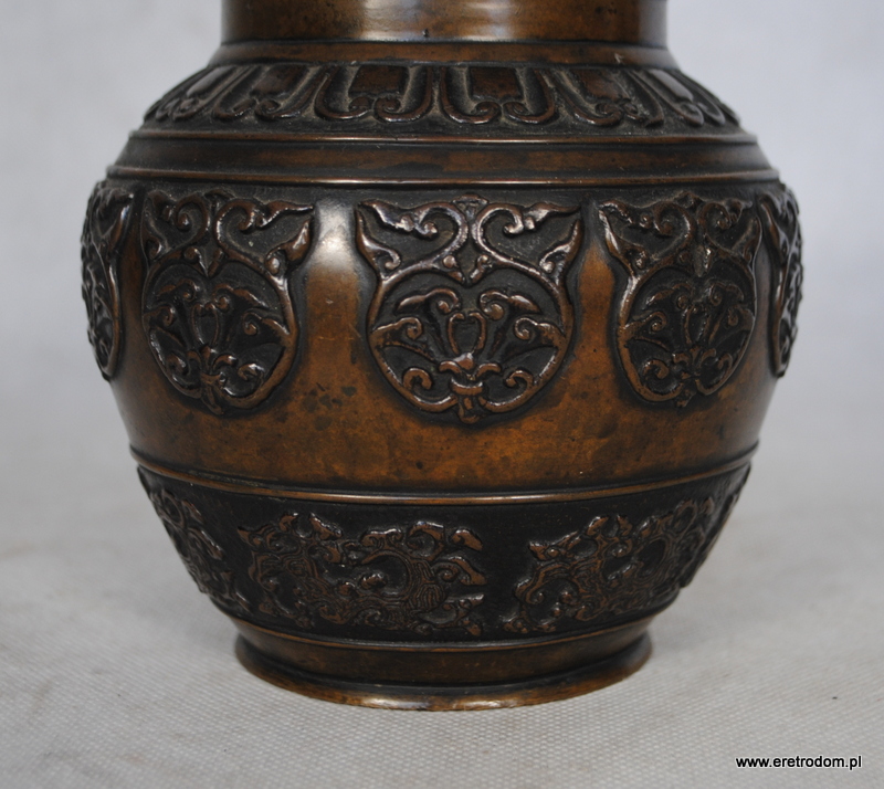 Wazon wykonany z patynowanego brązu. Bogato ozdobiony. Całość bardzo ładnie wykonana. Chiny koniec XIX w.
