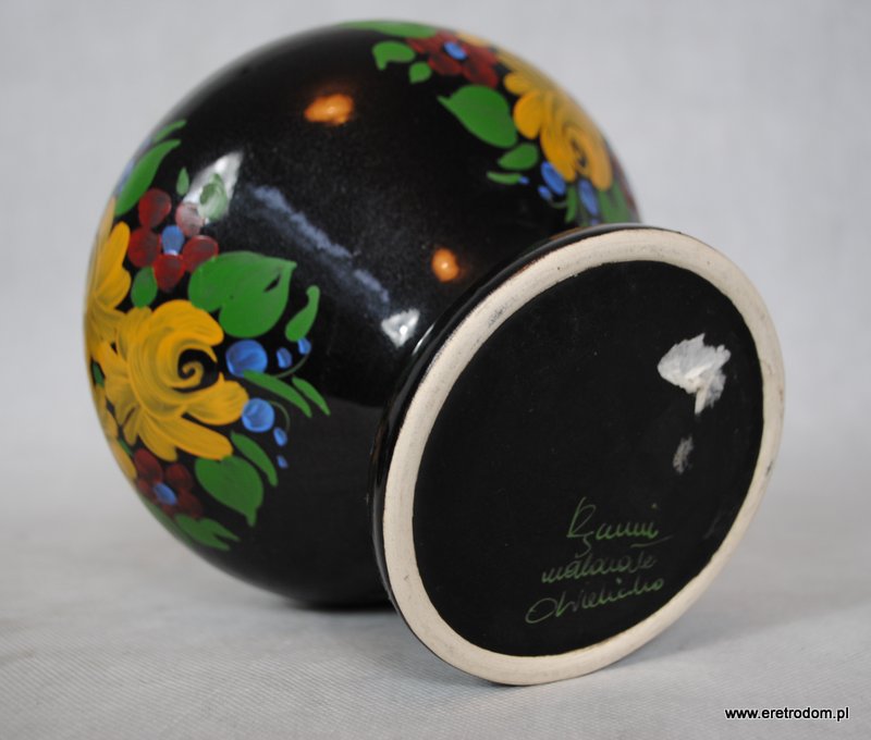 Wazon wykonany w jednej z polskich manufaktur w katach 70-80 XXw. . Ceramika ręcznie malowana w kwiaty. Od spodu podpis malarki.