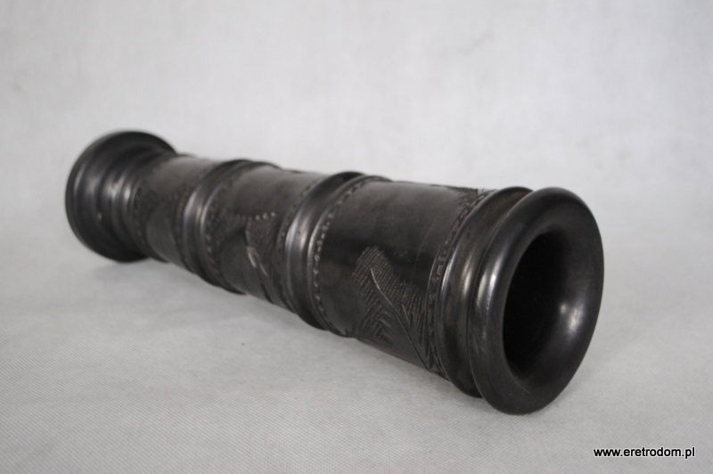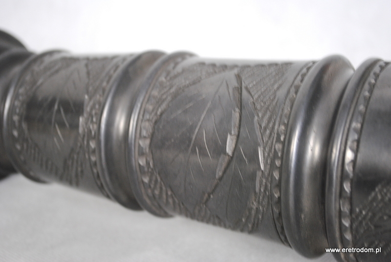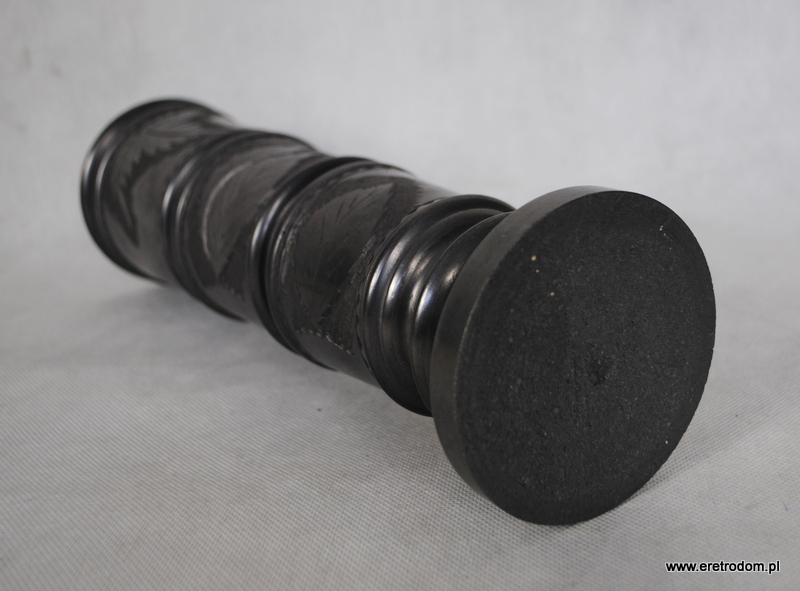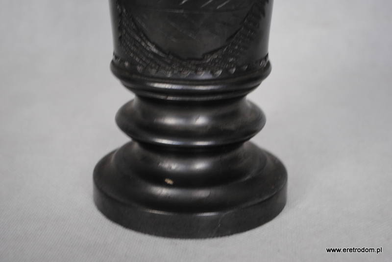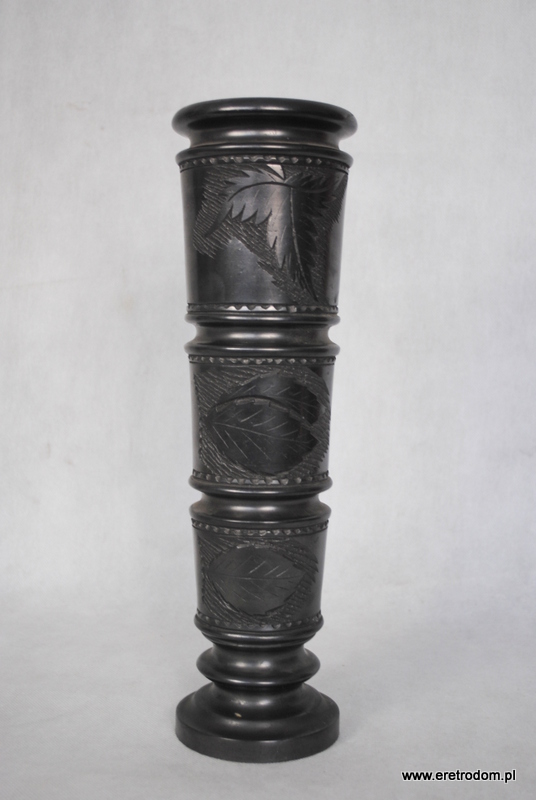 Wazon wykonany z grafitu. Polska produkcja z II poł XXw. Ciężka i toporna forma, ręcznie rzeźbiona w motywy florystyczne.