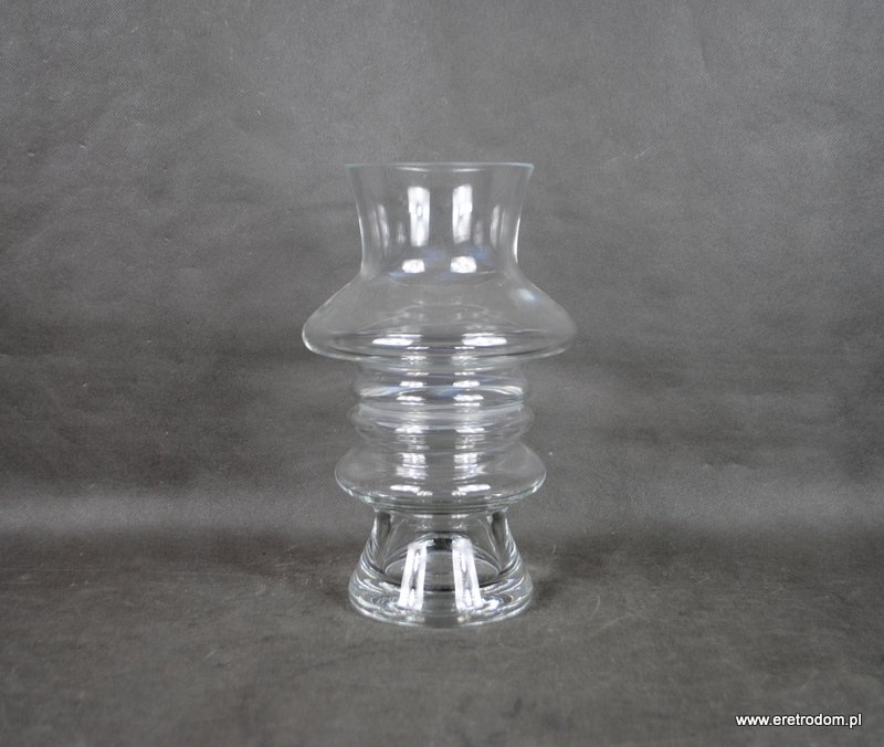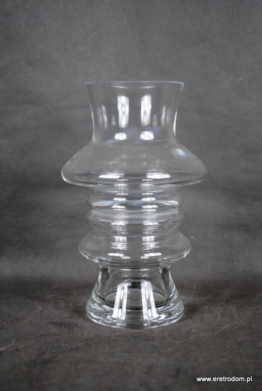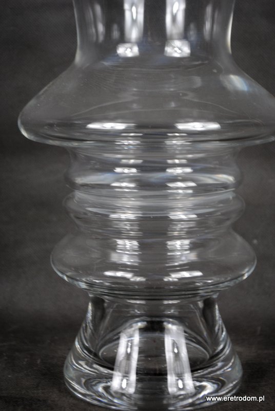 Wazon o geometrycznej formie. Wyprodukowany w II poł XXw. Szkło sodowe, bezbarwne.