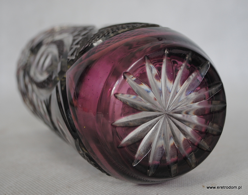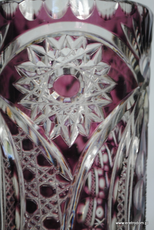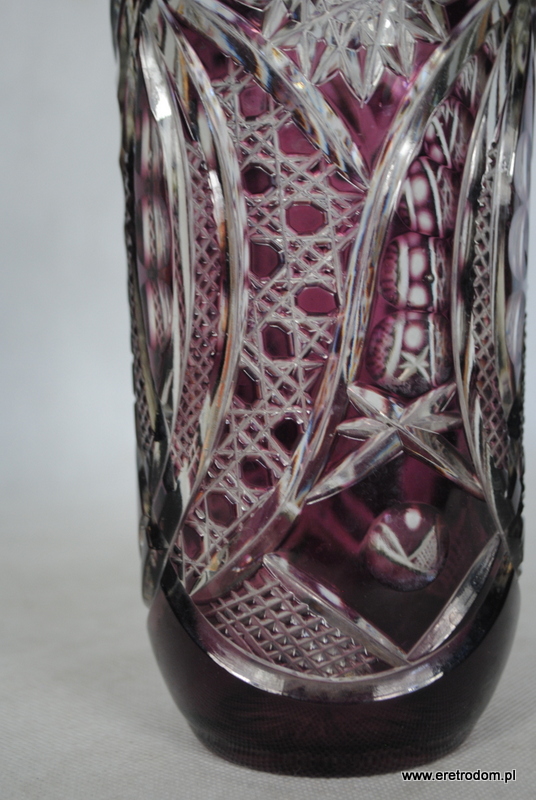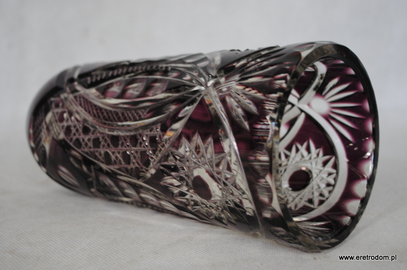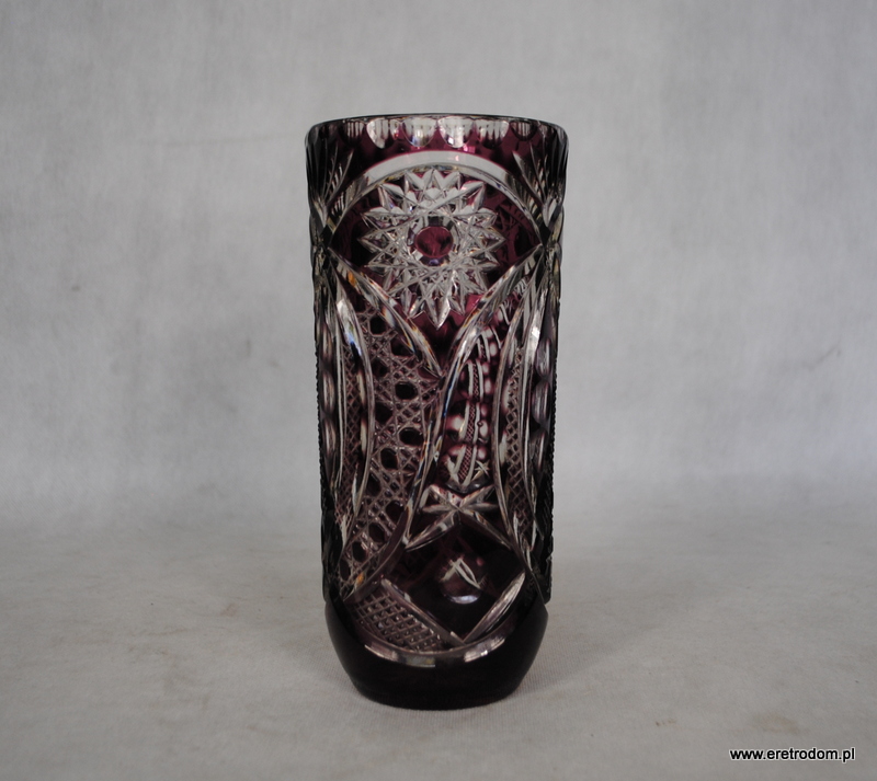 Imponujący wazon kryształowy, ręcznie szlifowany. Z zewnątrz w kolorze fioletowym. Polska, lata 70-80.