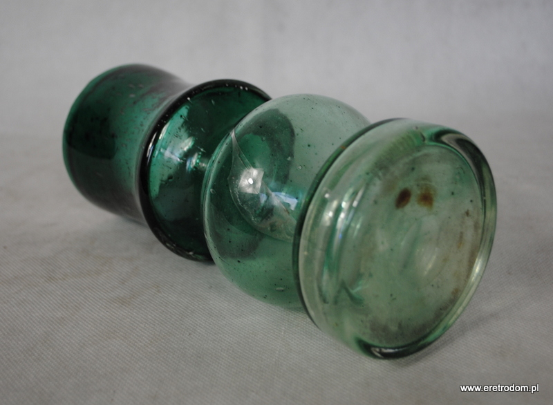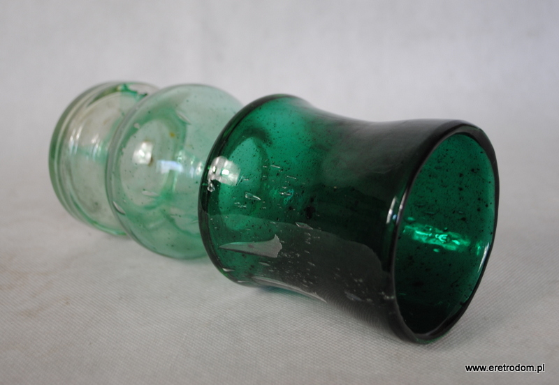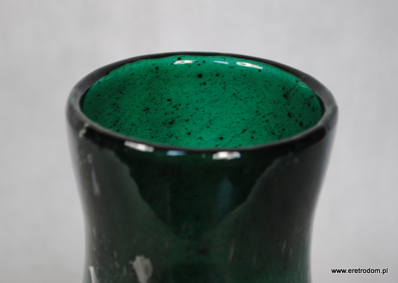 Wazon wykonany w Spółdzielni Kamionka w Łysej Górze. Szkło dość grube, zawiera mnóstwo pęcherzyków powietrza.
