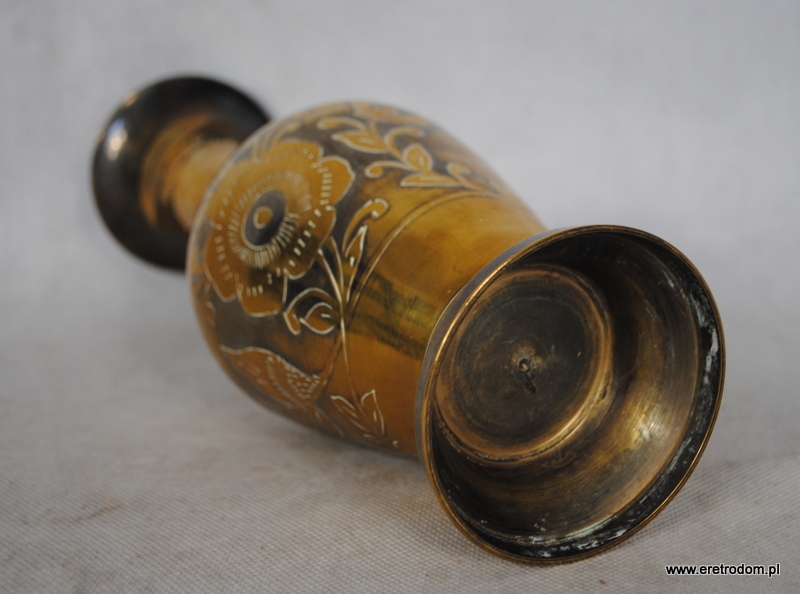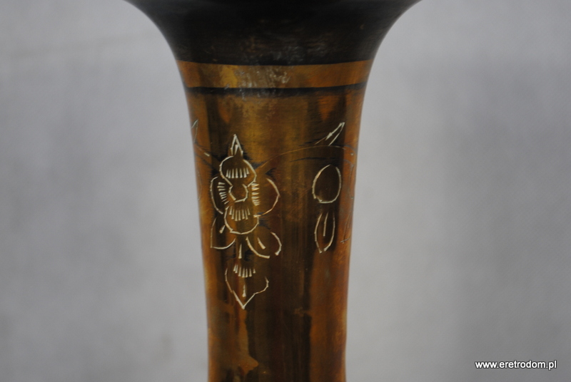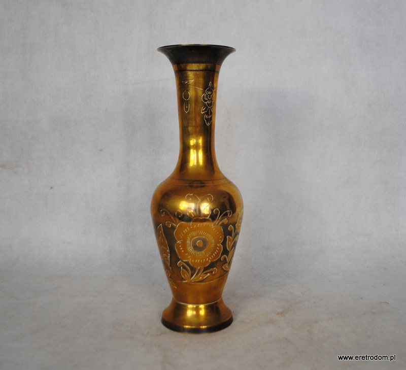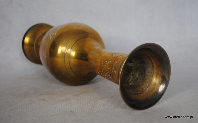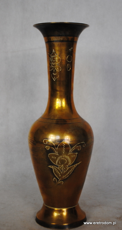 Wazon wykonany z mosiądzu. Drapany we wzory kwiatowe.
