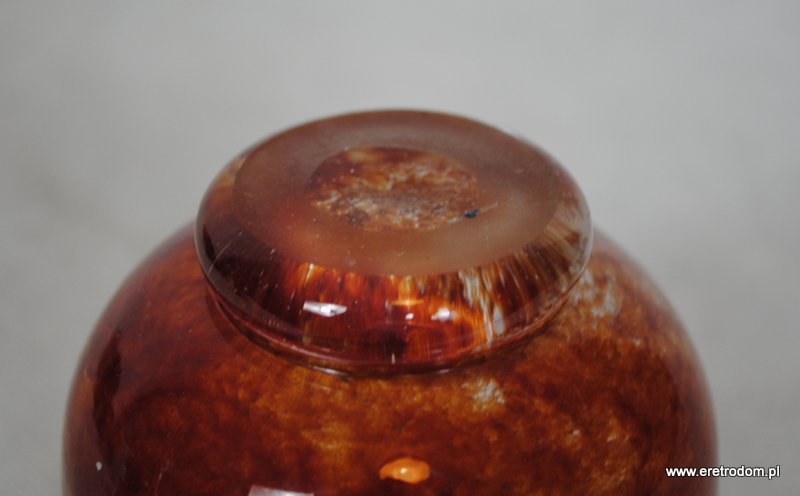 Wazon, szkło sodowe, barwione w masie w odcieniach czerwieni i pomarańczu. Najprawdopodobniej polska produkcja z lat 70-80 XXw.