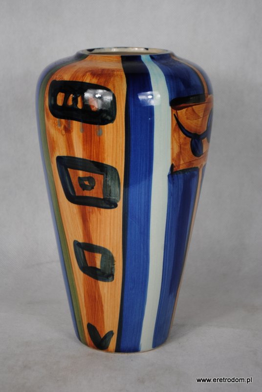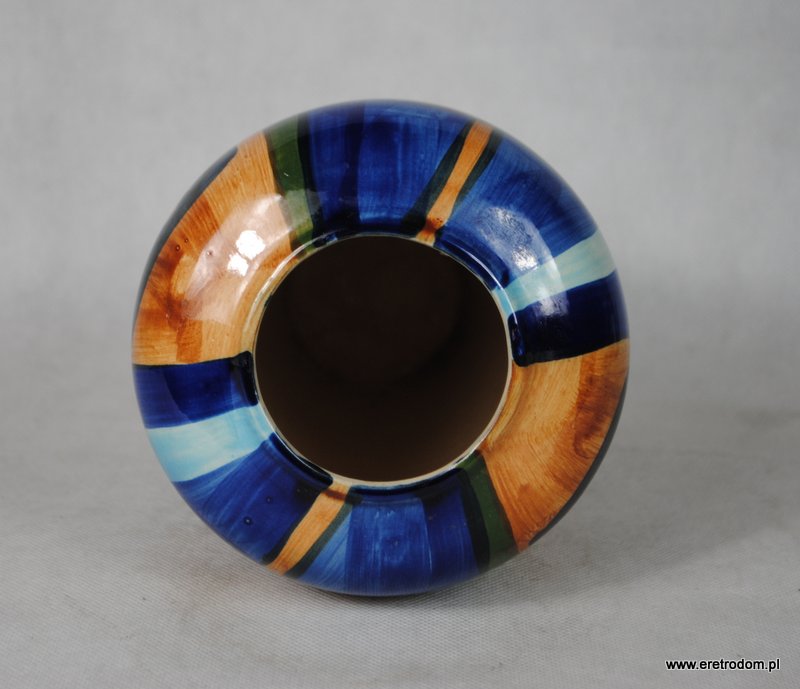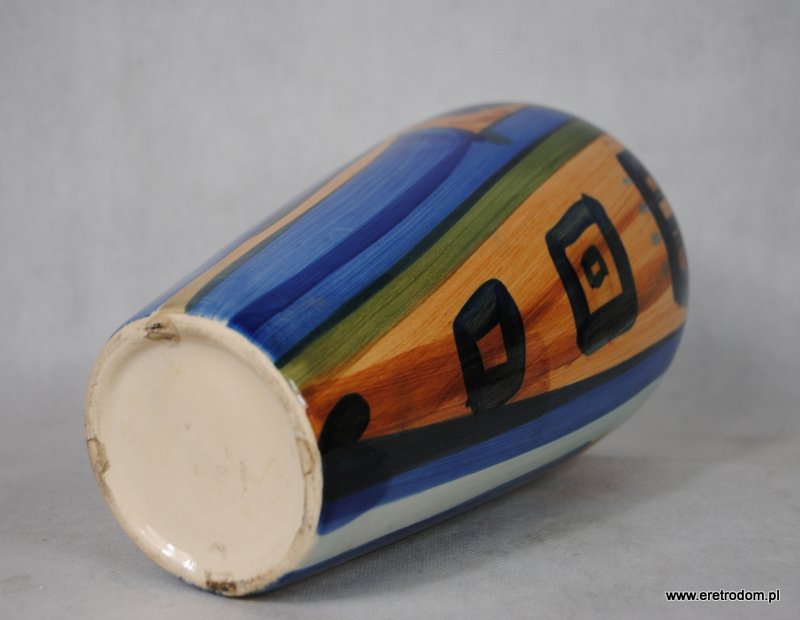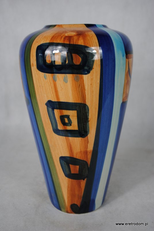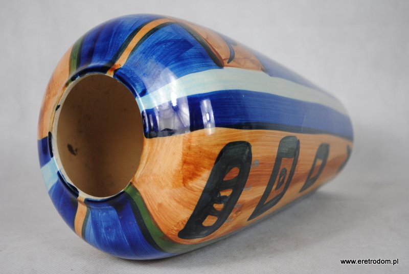 Wazon wykonany z ceramiki. Ręcznie malowany w stylu New Look. Nieco przypomina wyroby z Włocławka.