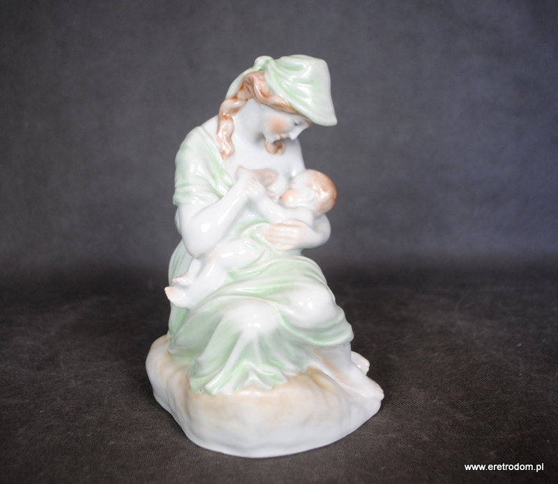 Figurka przedstawiająca matkę z dzieckiem. Wyprodukowana w Węgierskiej manufakturze Herend. Biała porcelana ręcznie malowana. Bardzo ładne wykonanie.