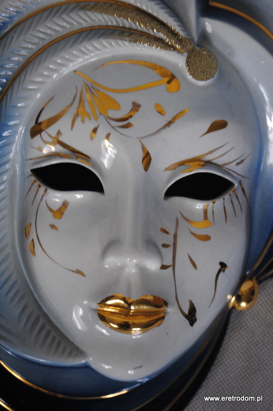 Maska – ozdoba naścienna wykonana z ceramiki szkliwionej. Ręcznie malowana. Do powieszenia.