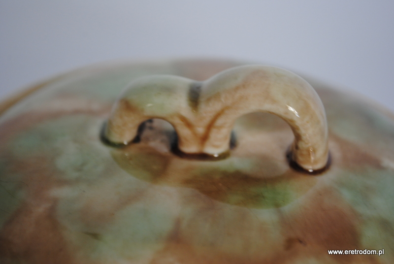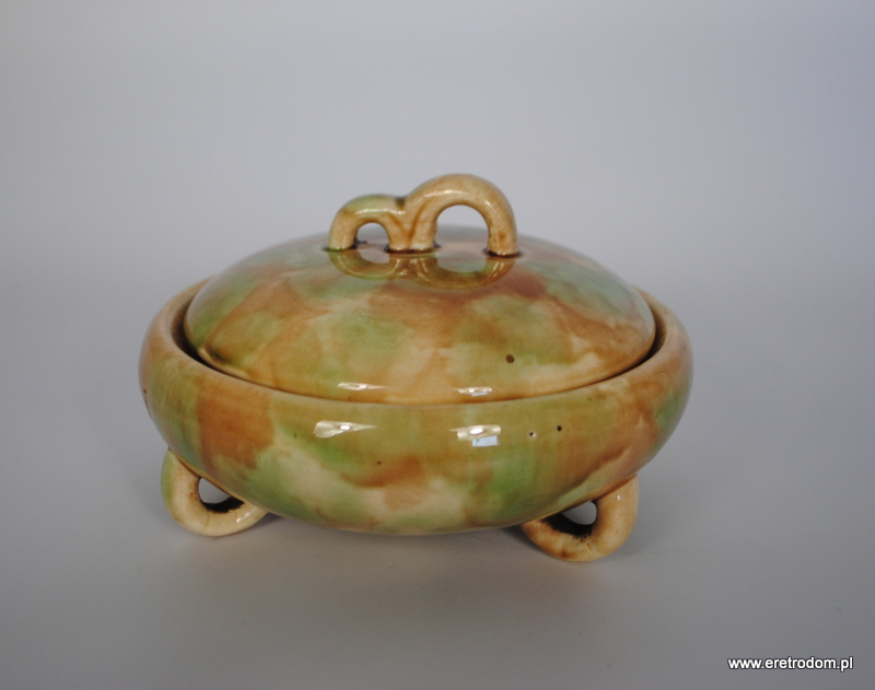 Bomboniera wyprodukowana we Włocławku. Fajans malowany tzn. „chmura”.