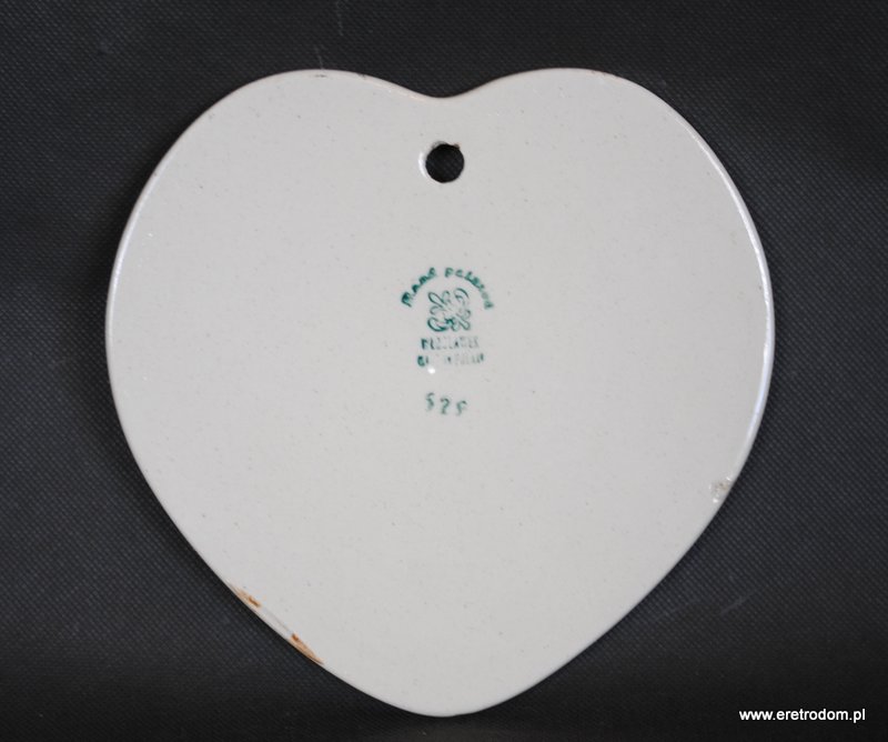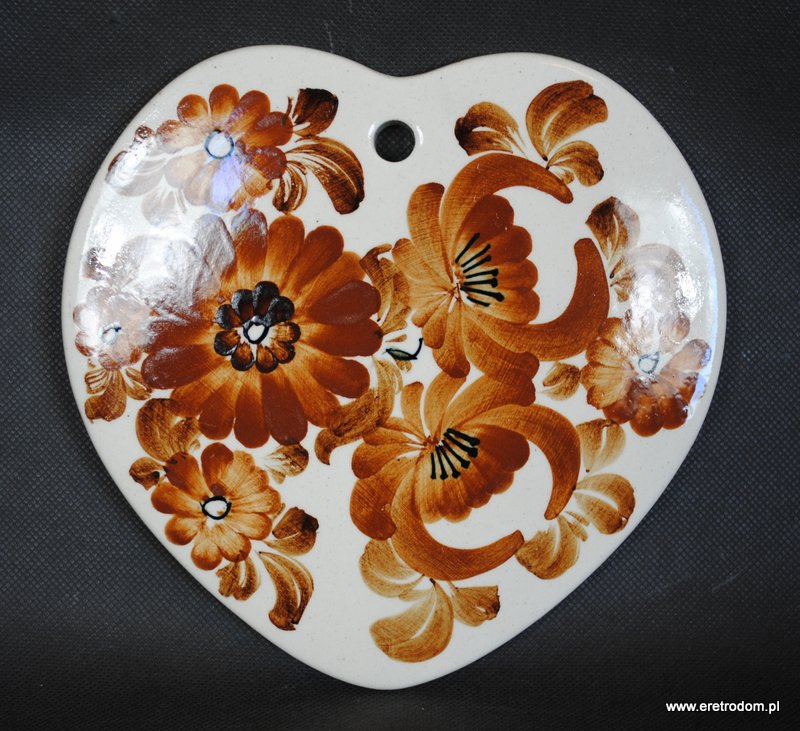 Deska sygnowana Włocławek. Fajans ręcznie malowany motywem kwiatowym. Ciekawy kształt serduszka.