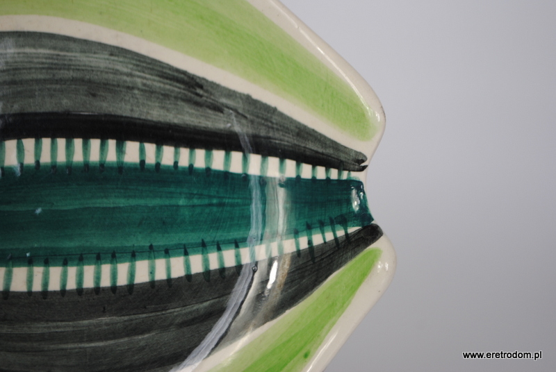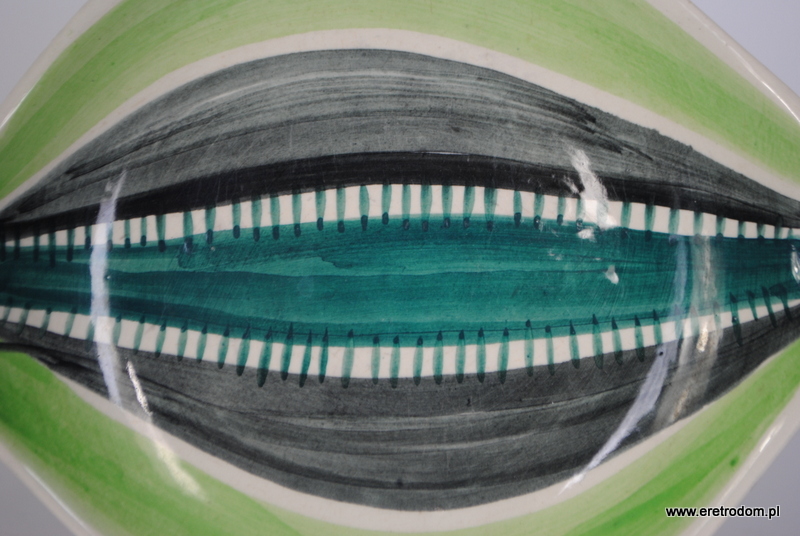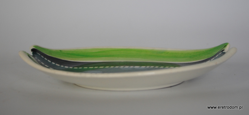 Talerzyk z garnituru do ciast nr 186. Projekt Elżbiety Piwek-Białoborskiej dla Włocławka. Fajans ręcznie malowany w stylu New Look.
