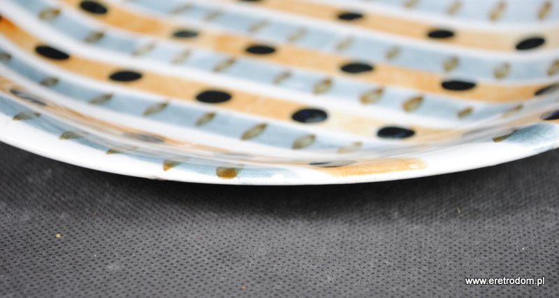 Stan dobry, krakelura, odpryski szkliwa na rantach, typowe wady produkcyjne.