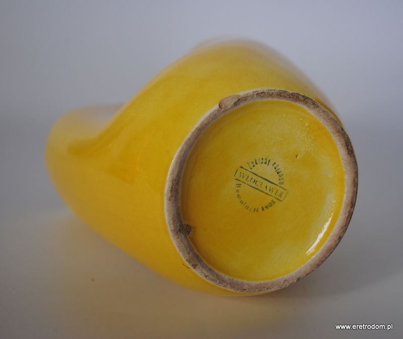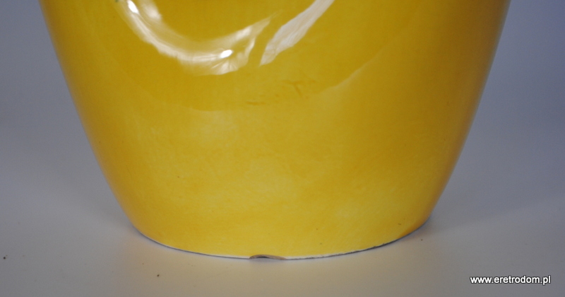 Wazon projektu Jana Sowińskiego dla Włocławka. Numer 208. Fajans malowany na żółty kolor.