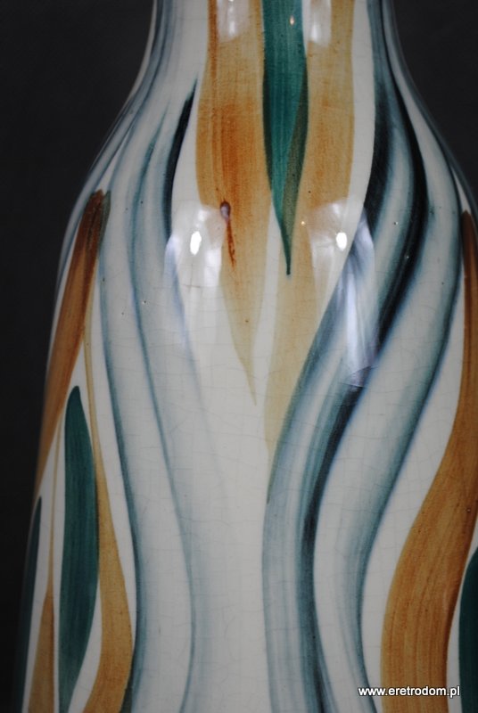 Wazon sygnowany Włocławek (po 1968r). numer 430. Projekt Jana Sowińskiego z 1960 roku. Fajans ręcznie malowany w stylu New Look.