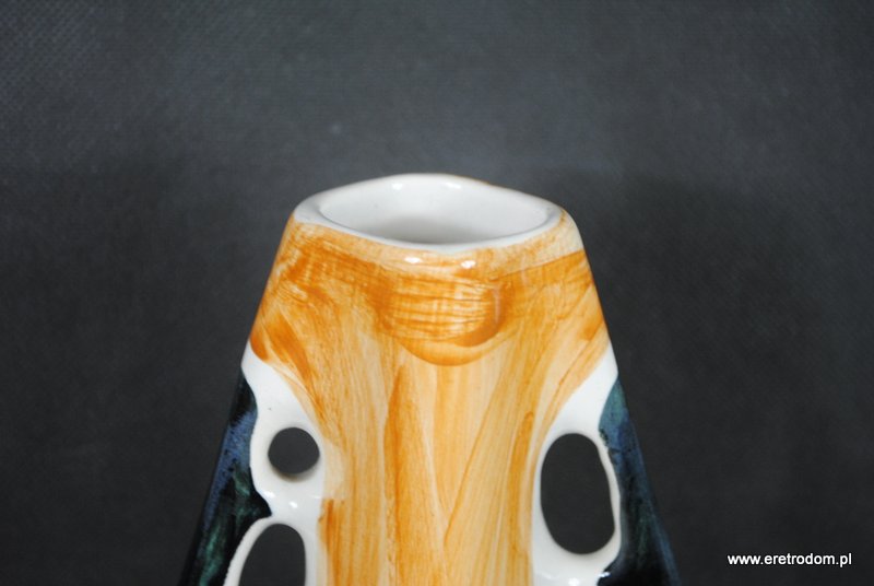 Wazon sygnowany Włocławek numer 433, proj. Wit Płażewski, około 1960r. Fajans szkliwiony, ręcznie malowany z stylu New Look.