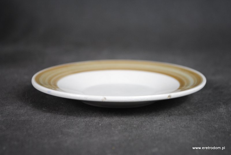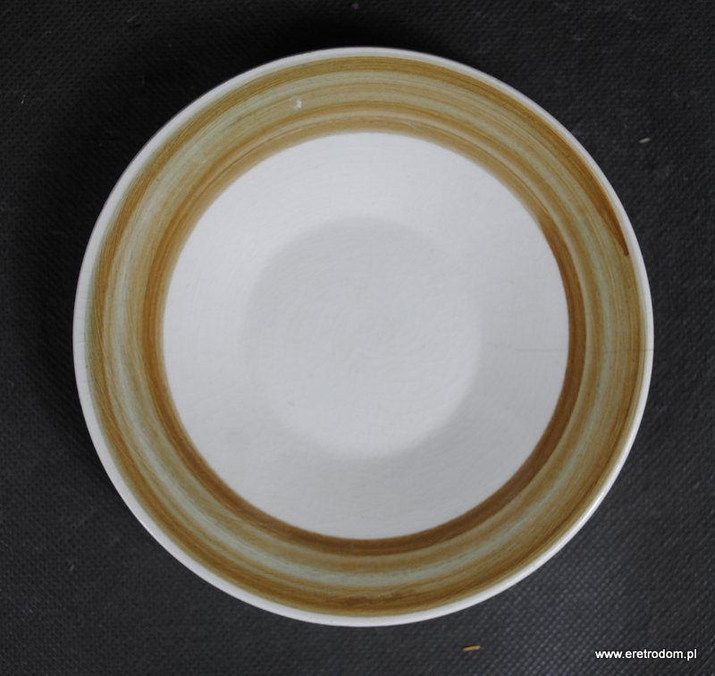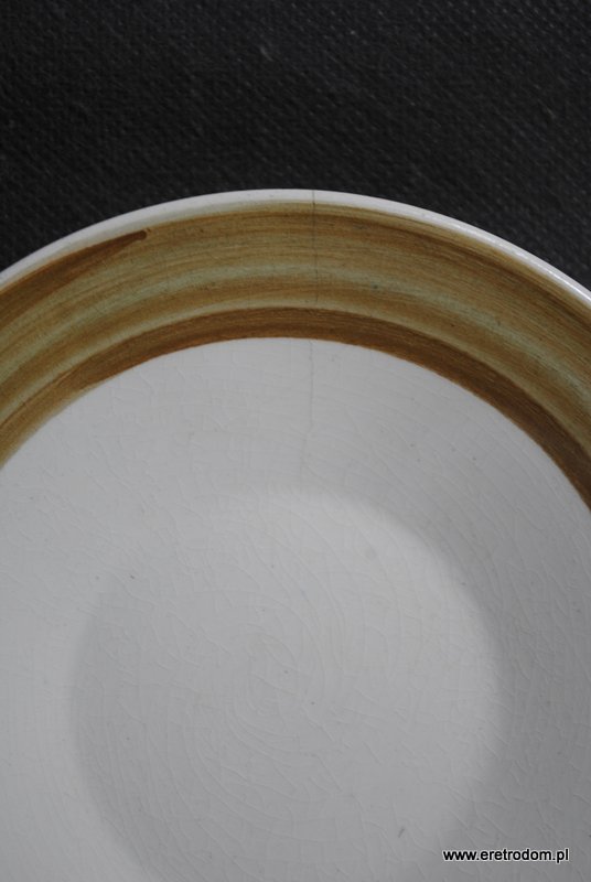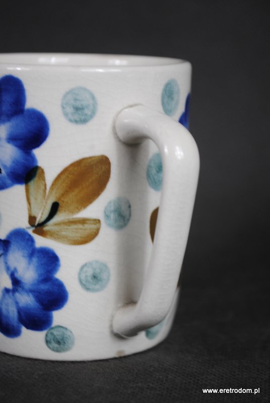 Filiżanka ze spodkiem sygnowana Włocławek, proj. Wit Płażewski nr 458. Fajans ręcznie malowany, szkliwiony.