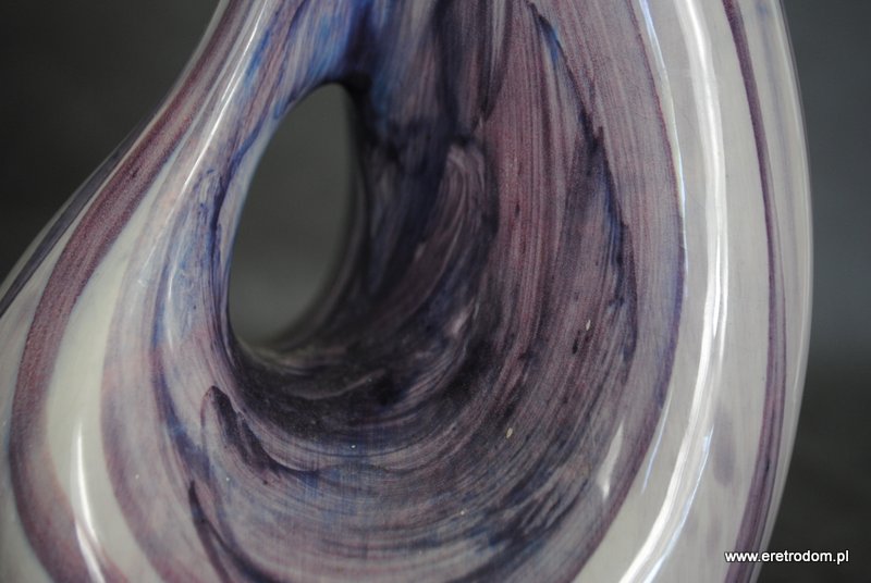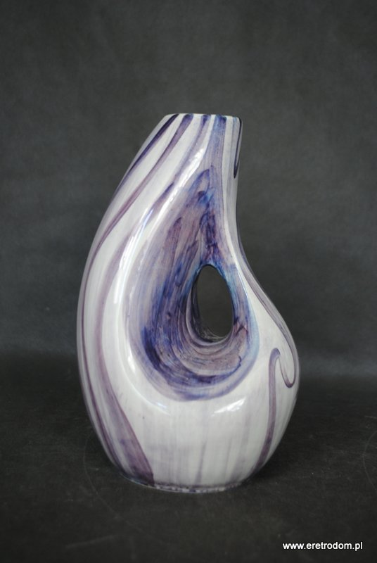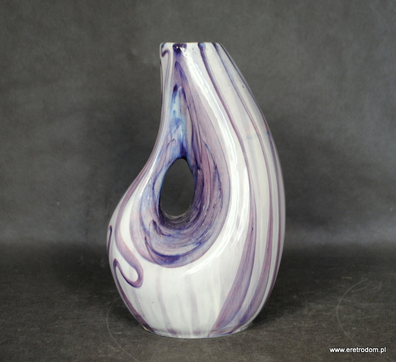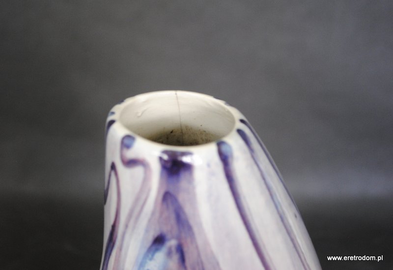 Wazon sygnowany Włocławek (II poł XXw.). Projekt Wita Płażewskiego z 1958 roku. Numer kat. 257. Fajans ręcznie malowany w stylu New Look ( odcienie fioletu).