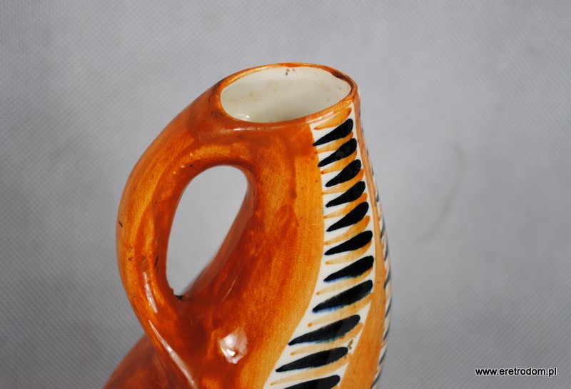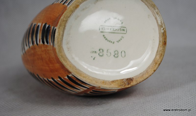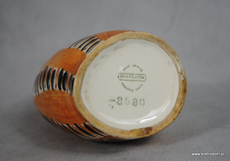Wazonik, sygnatura Włocławek ( lata 1956 – 1967), proj. Wit Płażewski, nr 271. Fajans, ręcznie mailowany w stylu New Look, szkliwiony.