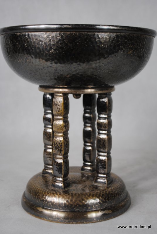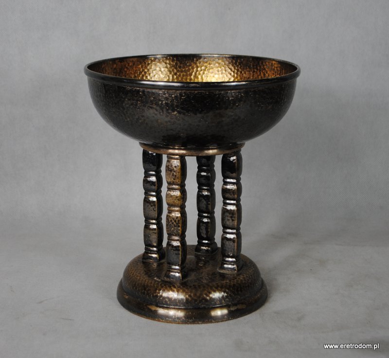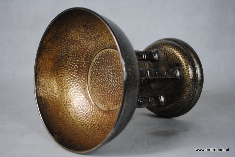 Puchar czy też podest. Produkcja WMF ( I poł XXw.). Mosiądz młotkowany, platerowany.