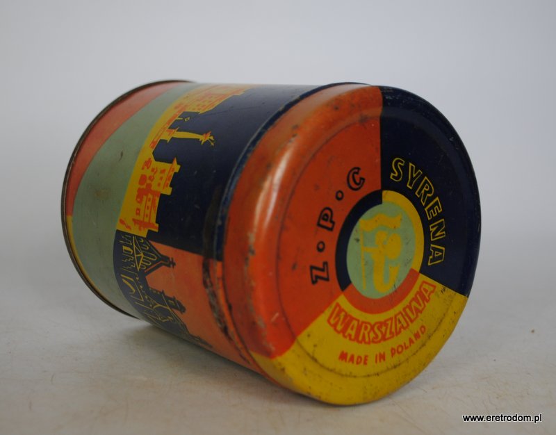 Opakowanie, Z.P.C. Syrena Warszawa. Puszka z ładną szatą graficzną.