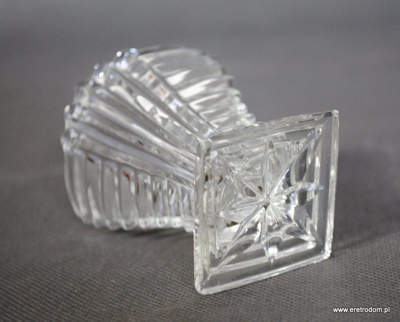 Pojemnik na wykałaczki. Produkcja HSG Ząbkowice, numer katalogowy to 2216. Szkło prasowane, bezbarwne.
