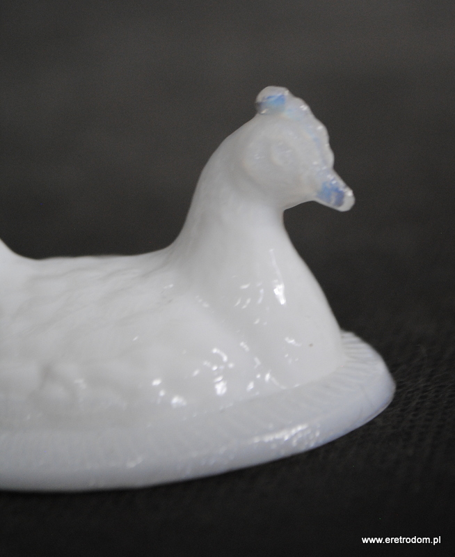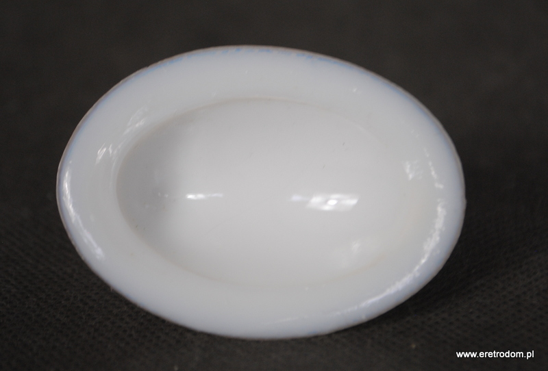 Góra z bomboniery-solniczki pochodzącej z HSG Ząbkowice. Szkło prasowane, barwione w masie na biały kolor.