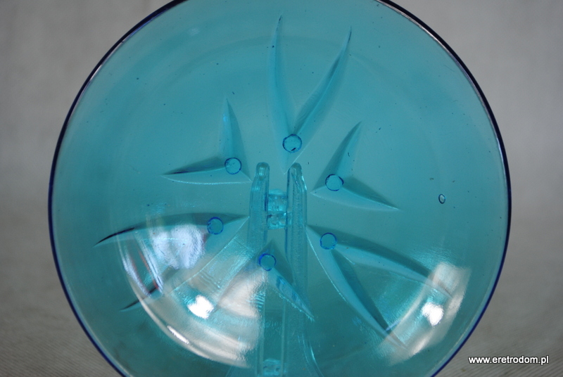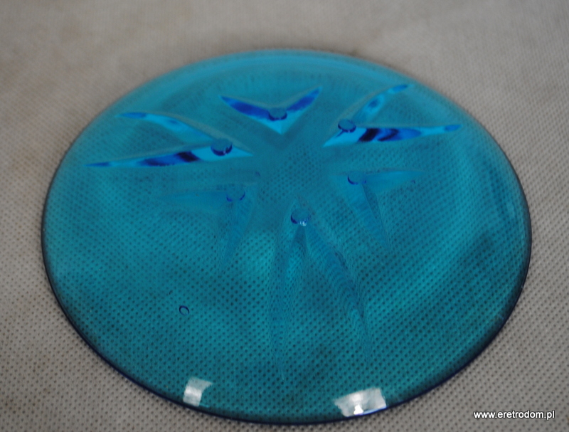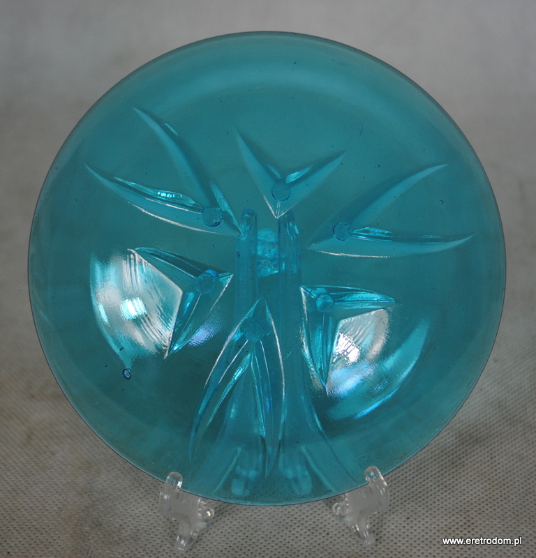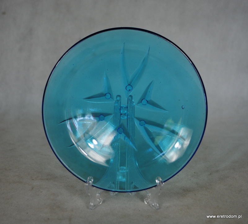 Talerz czy też paterka zaprojektowana przez Jana Sylwestra Drosta dla HSG Ząbkowice. Nazywana Jaskółką. Szkło prasowane, barwione w masie na turkusowy kolor.