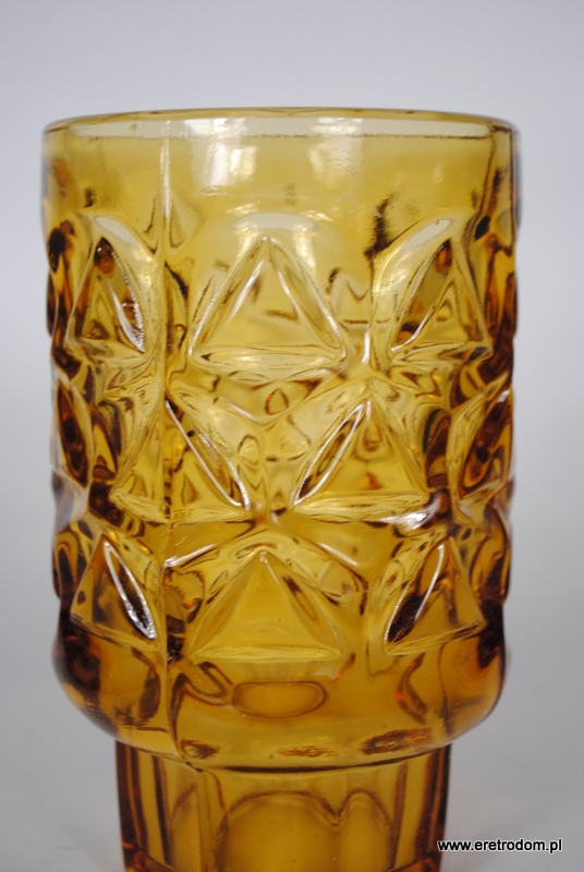 Wazon nazywany Promieniotwórczość. Projekt Jana Sylwestra Drosta dla HSG Ząbkowice. Szkło prasowane, barwione w masie.