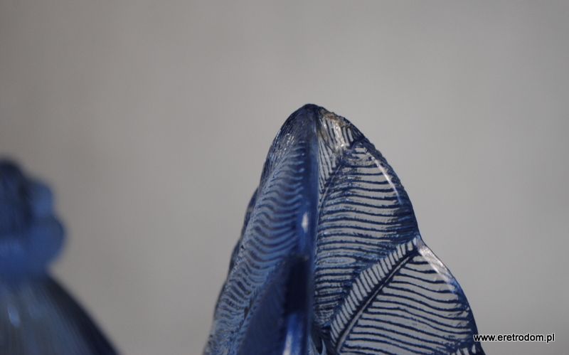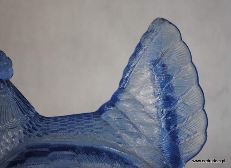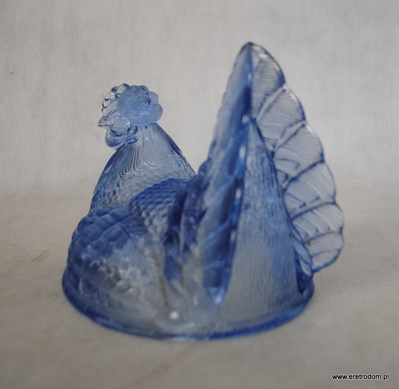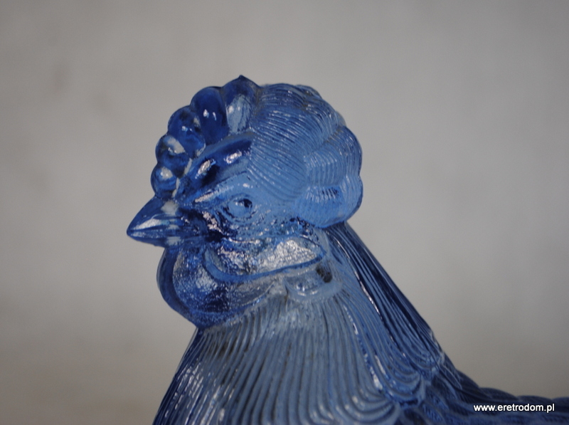 Kura bomboniera wyprodukowana HSG Ząbkowice. Szkło prasowane, barwione w masie na niebieski kolor.