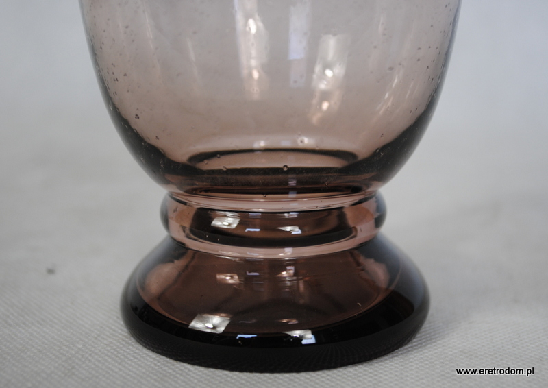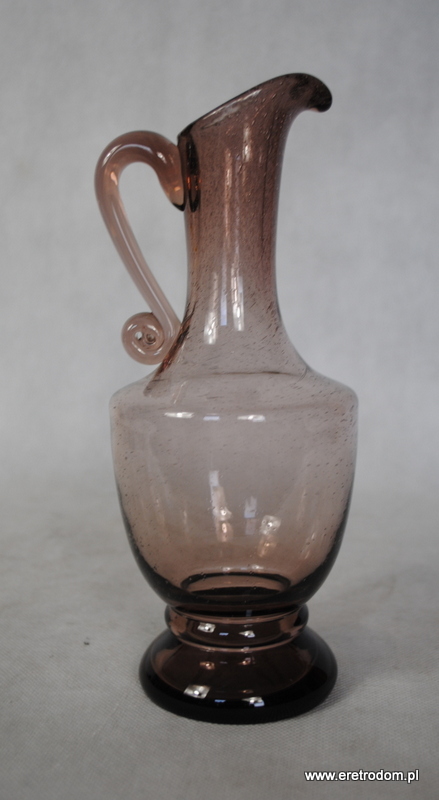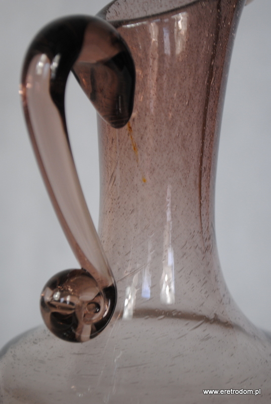 Dzbanek HSG Ząbkowice, projekt Ludwika Fiedorowicza. Szkło ręcznie formowane, barwione na kolor fioletowo-bakłażanowy. Posiada bąbelki powietrza.