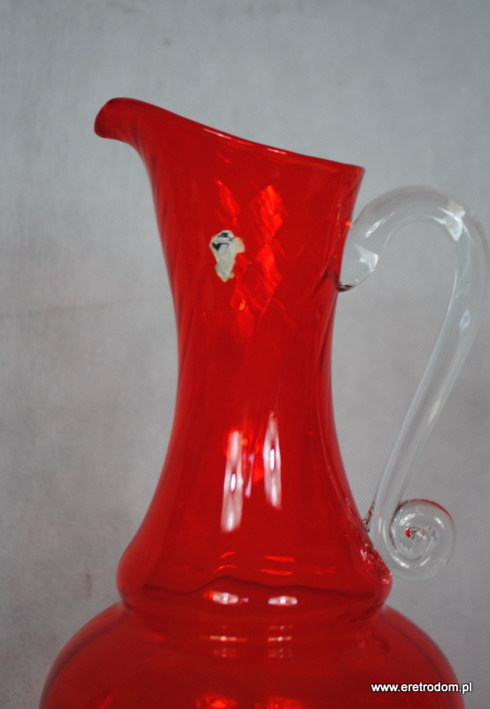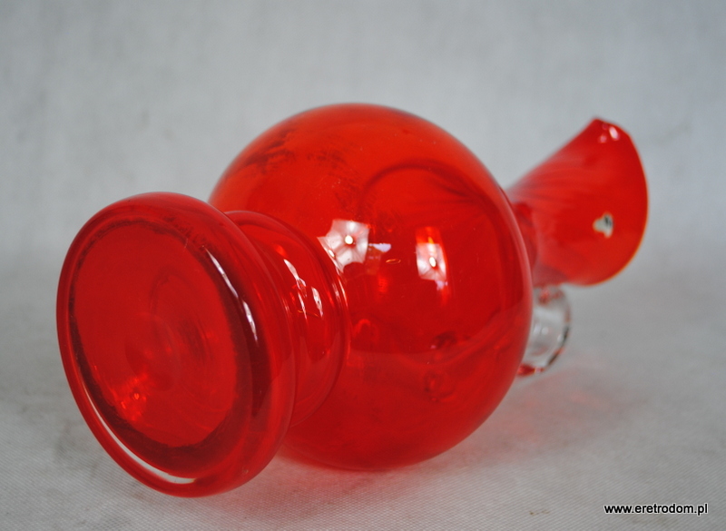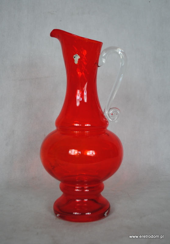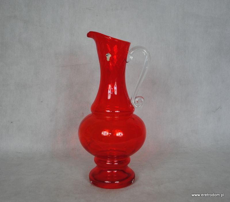 Dzban projektu L. Fiedorowicza z 1982 roku. Wyprodukowany w HSG Ząbkowice w Dąbrowie Górniczej. Szkło barwione w masie, ręcznie formowane. Posiada pozostałości po naklejce producenta.