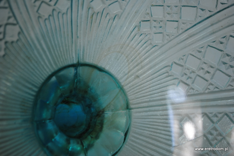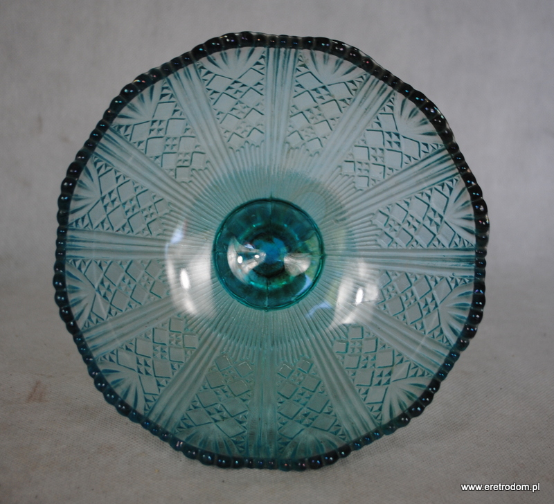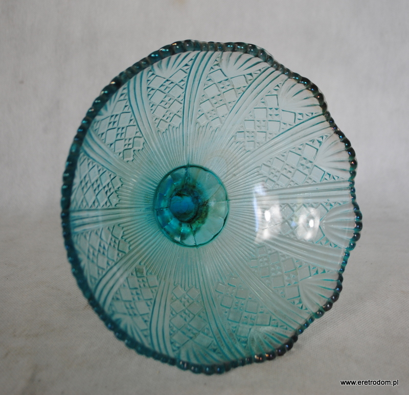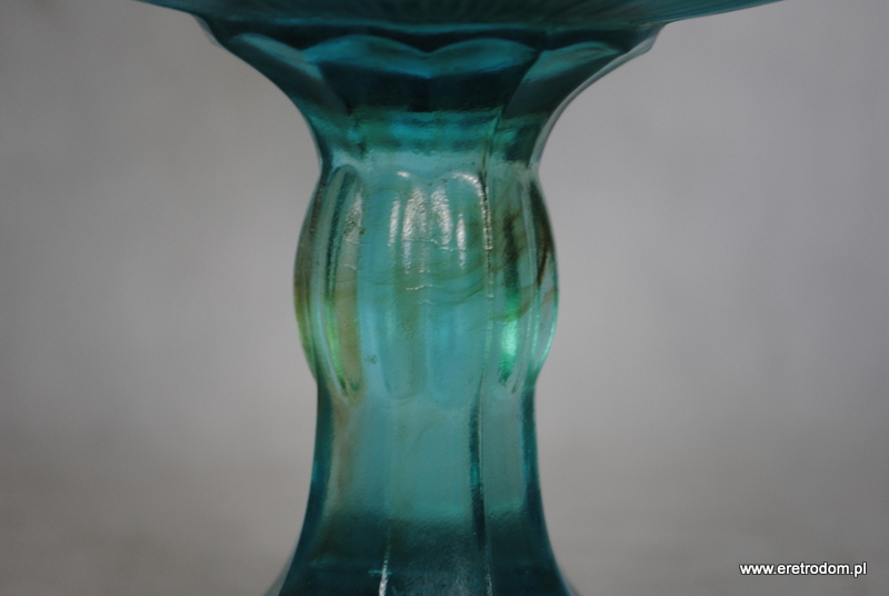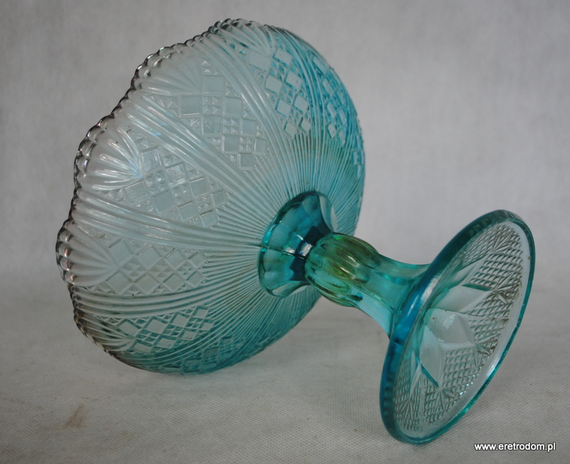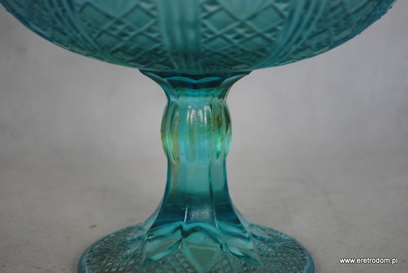 Owocarka wyprodukowana w HSG Ząbkowice ( numer 320). Szkło prasowane, barwione w masie na kolor niebiesko burzowy. Posiada pomarańczowe smugi.