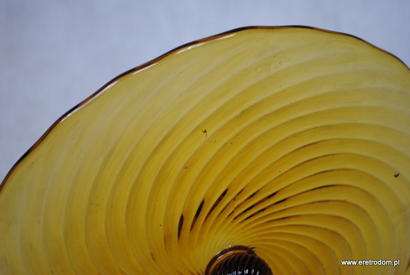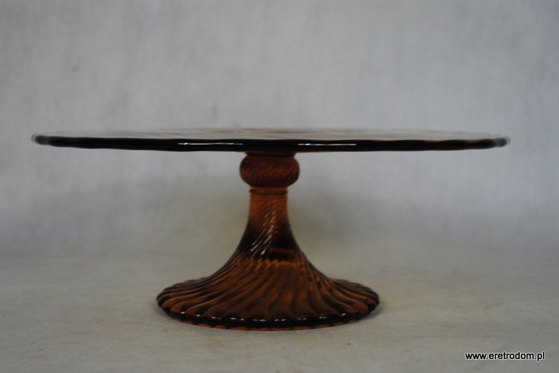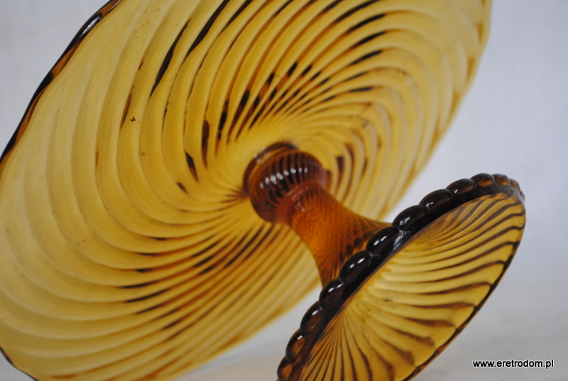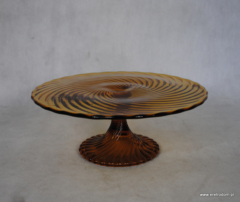 Tortownica, produkcja HSG Ząbkowice (proj. Ryszard Serwicki). Fason nazywany Twist lub Spirelli. Szkło prasowane, barwione w masie.
