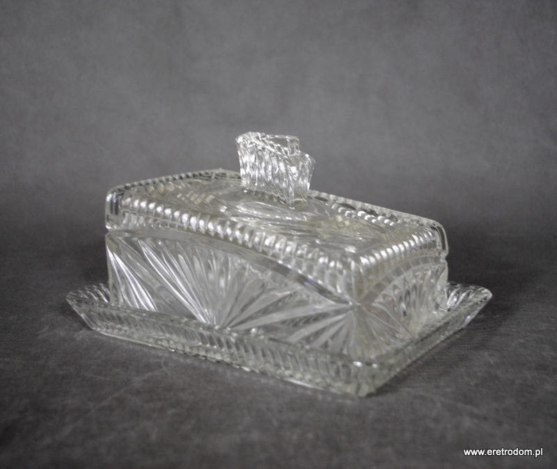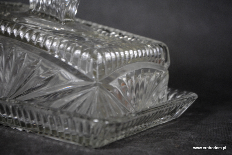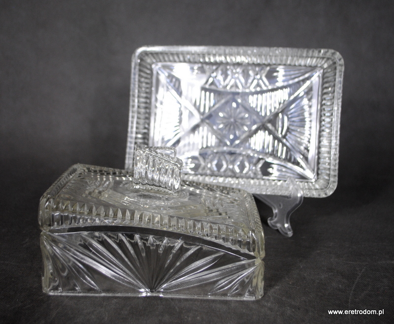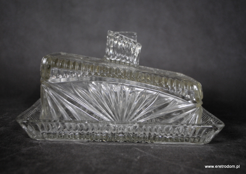 Serownica wyprodukowana w HSG Ząbkowice. Numer katalogowy to 2029 (Minex). Szkło sodowe, bezbarwne.