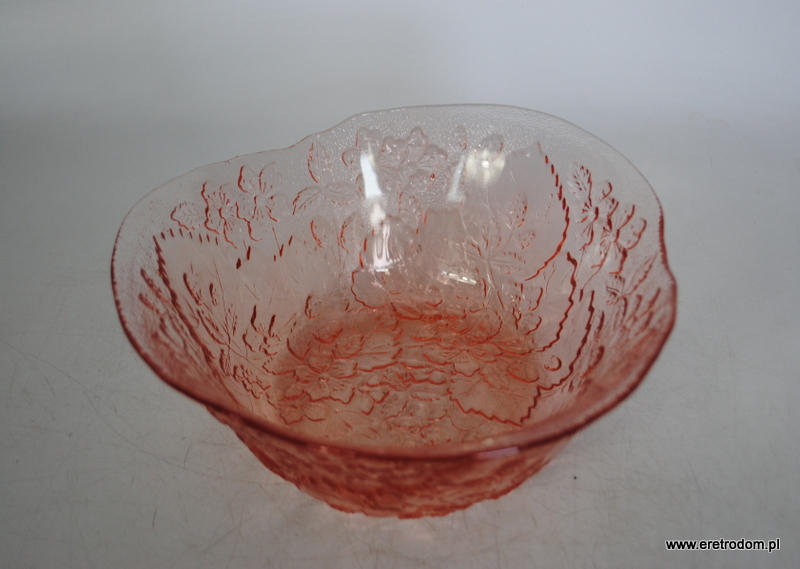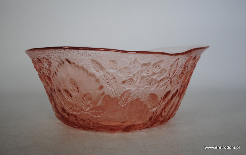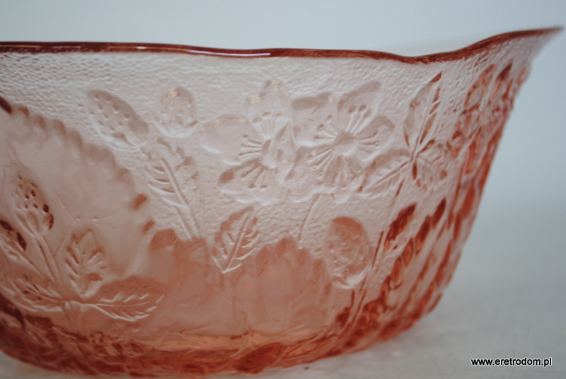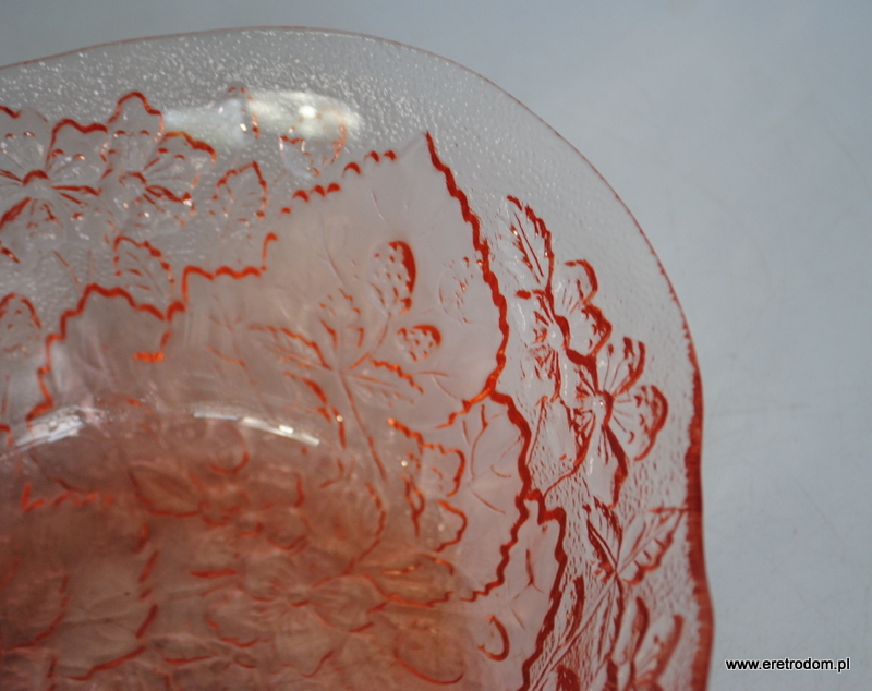 Misa/salatera, fason nazywany Strawberry/Poziomki, HSG Ząbkowice. Szkło prasowane, barwione w masie.
