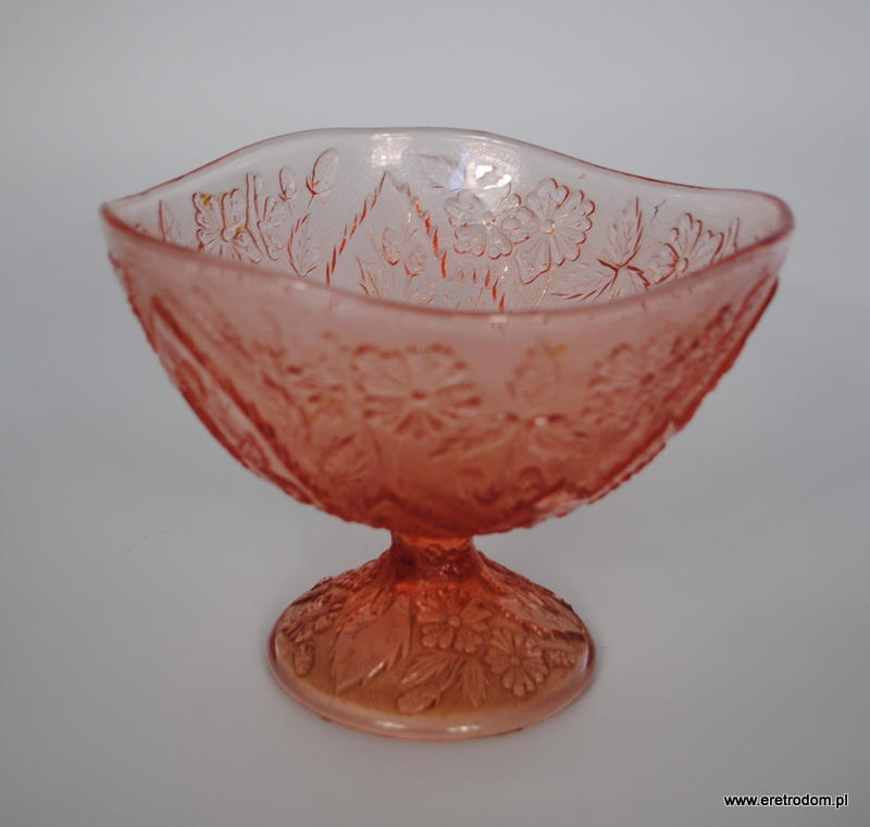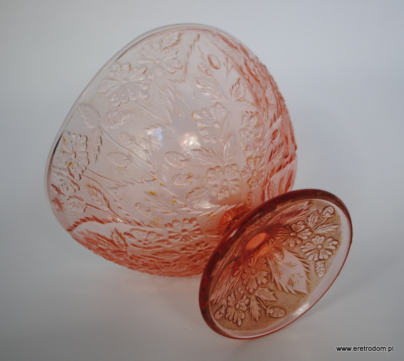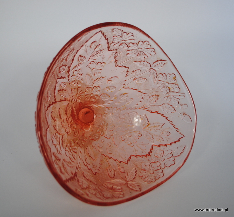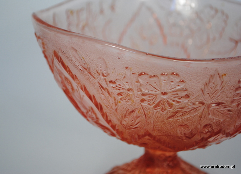 Owocarka. Fason Strawberry zaprojektowany przez Erykę Trzewik- Drost dla HSG Ząbkowice. Szkło prasowane, barwione w masie.