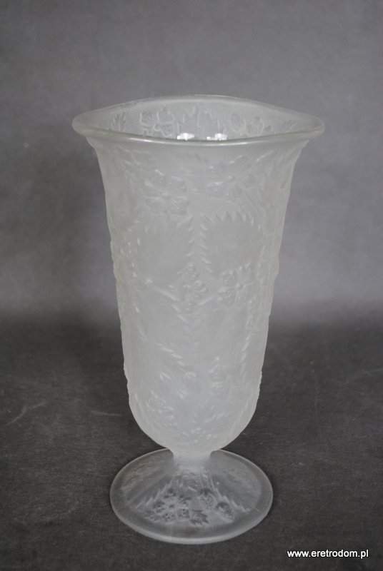 Wazon fason „Strawberry”. Projekt Eryki Trzewik Drost dla HSG Ząbkowice. Szkło prasowane, bezbarwne, mrożone.