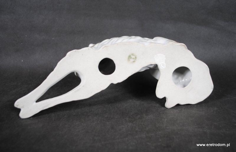 Figura pochodzi z lat 50-60-tych ze śląskiej manufaktury Zagórski i syn z Katowic. Ręcznie malowana.